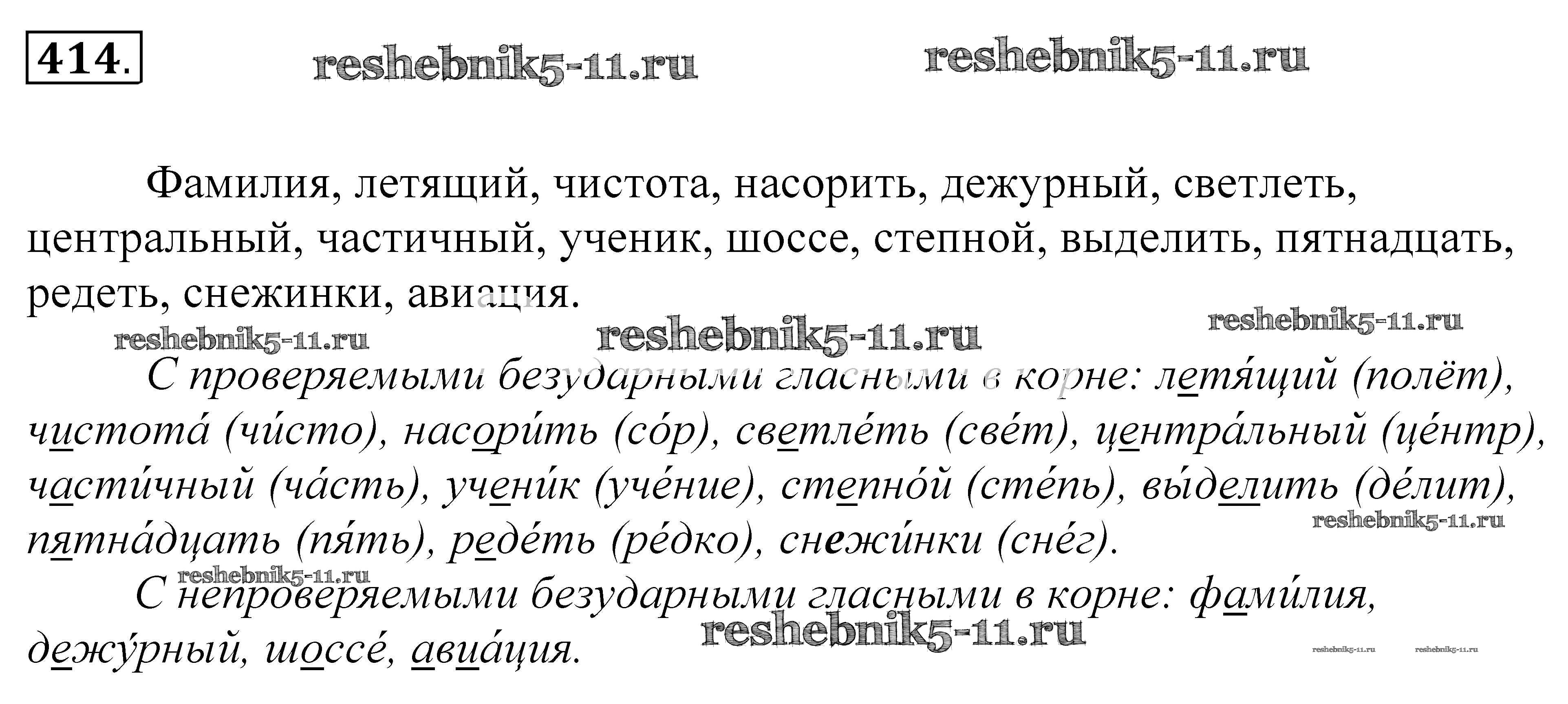 Готовая домашняя работа с ответами по Русскому языку за 5 класс Купалова, Еремеева, Лидман-Орлова Учебник Дрофа 2015 ФГОС - Упражнения 414