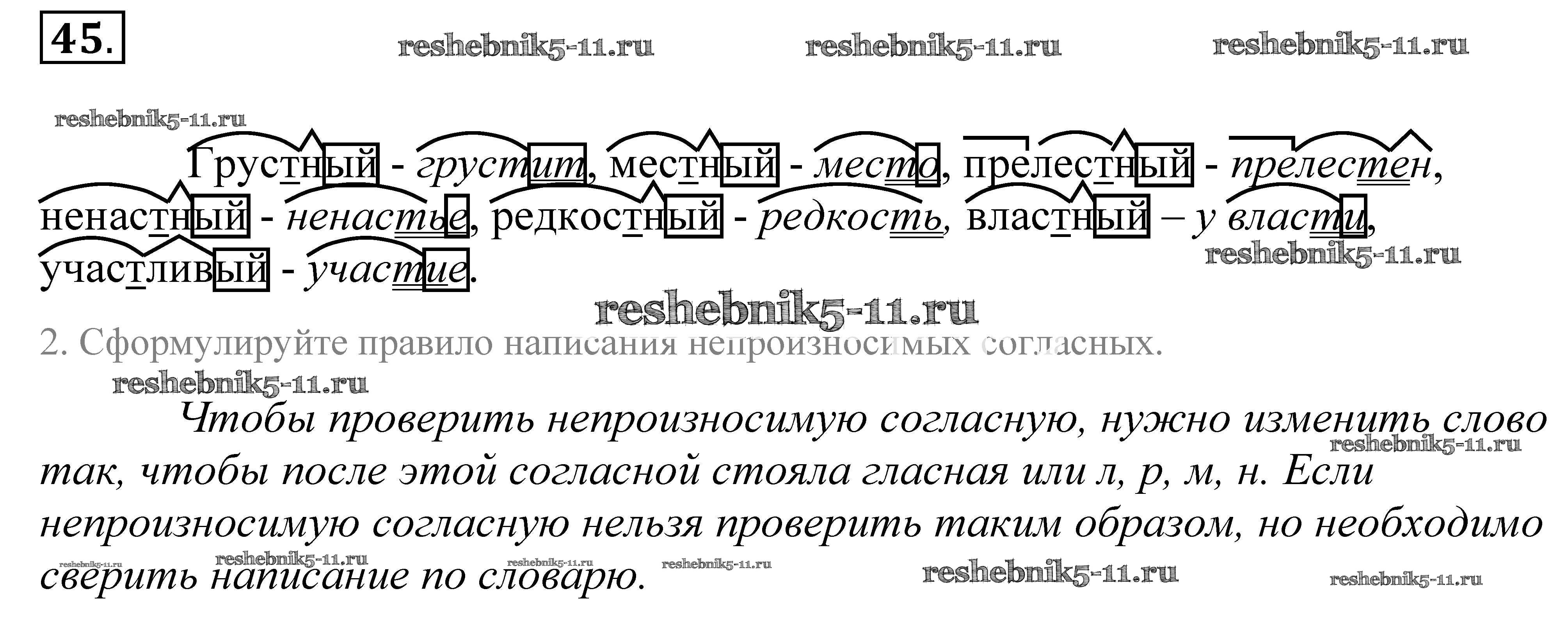 Готовая домашняя работа с ответами по Русскому языку за 5 класс Купалова, Еремеева, Лидман-Орлова Учебник Дрофа 2015 ФГОС - Упражнения 45