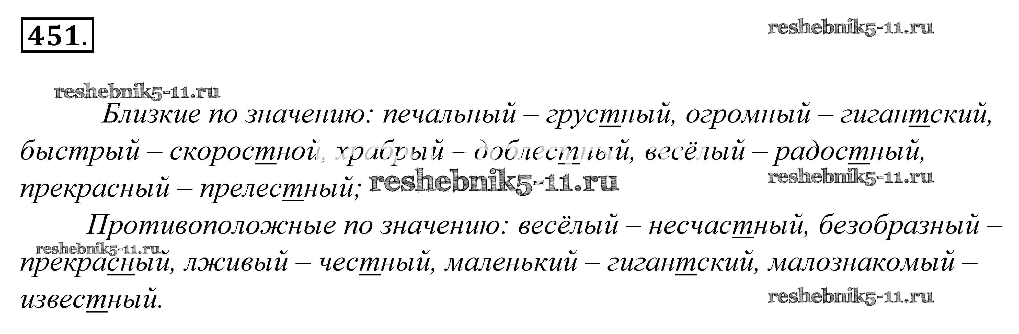 Готовая домашняя работа с ответами по Русскому языку за 5 класс Купалова, Еремеева, Лидман-Орлова Учебник Дрофа 2015 ФГОС - Упражнения 451