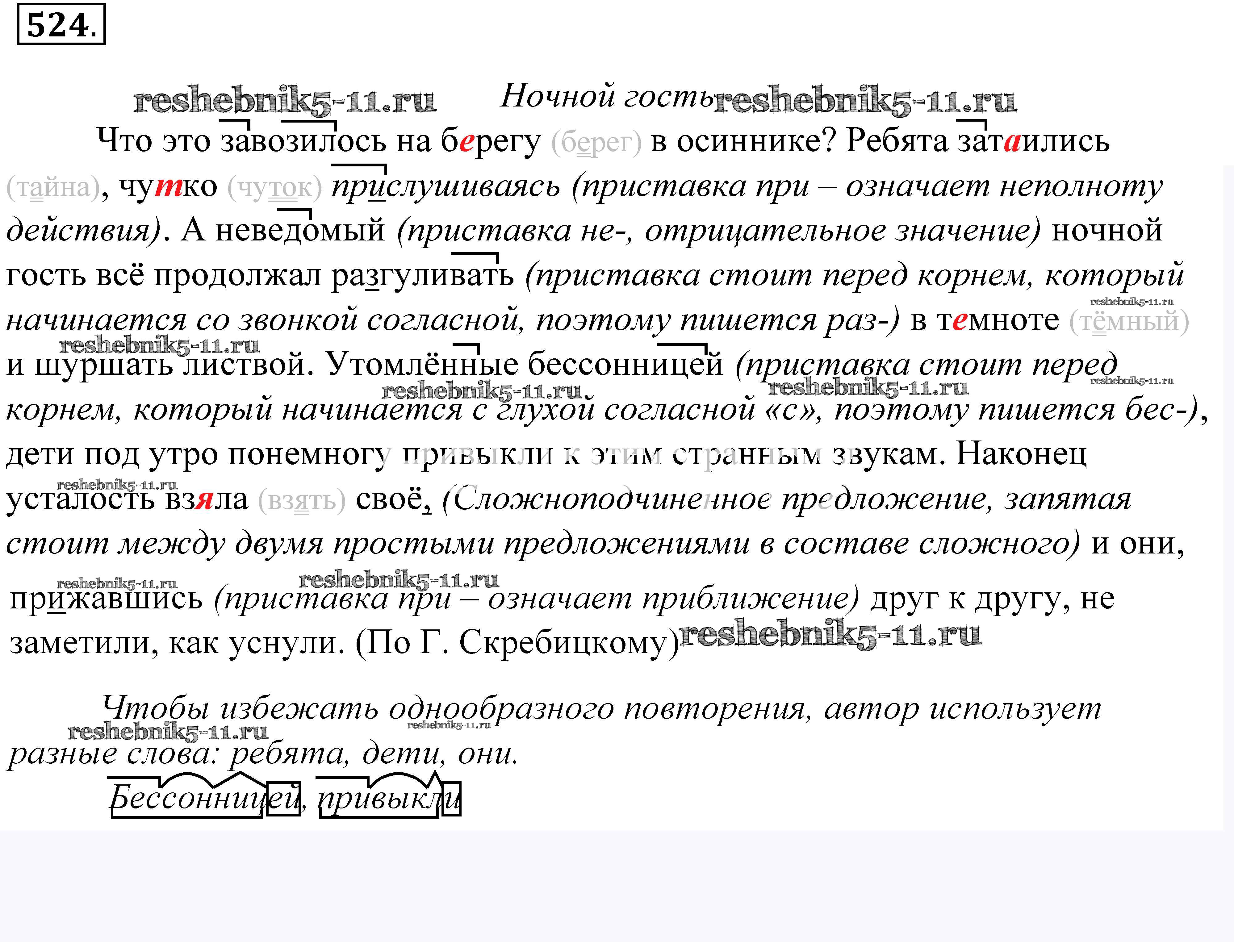 Готовая домашняя работа с ответами по Русскому языку за 5 класс Купалова, Еремеева, Лидман-Орлова Учебник Дрофа 2015 ФГОС - Упражнения 524