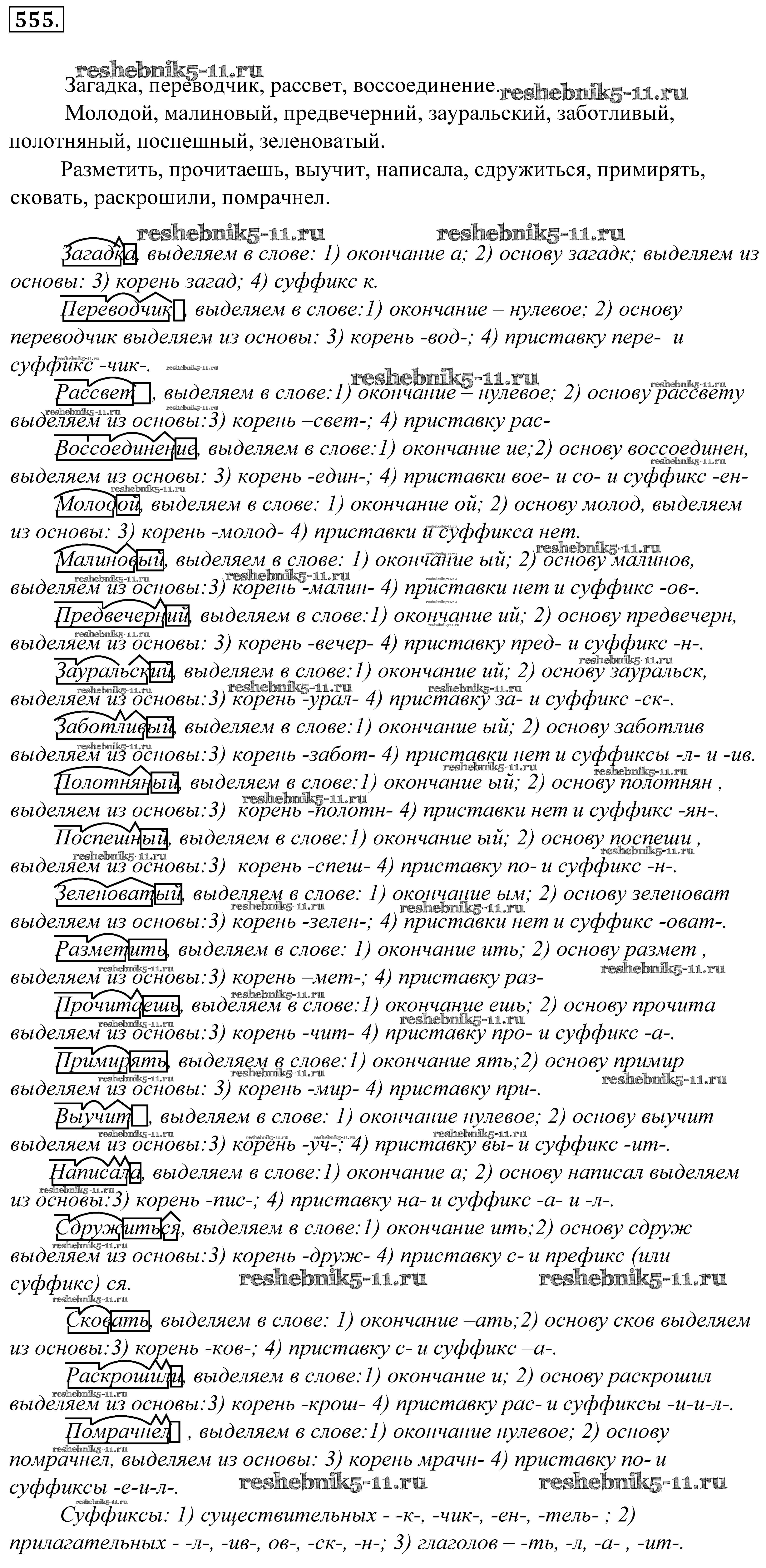 Готовая домашняя работа с ответами по Русскому языку за 5 класс Купалова, Еремеева, Лидман-Орлова Учебник Дрофа 2015 ФГОС - Упражнения 555
