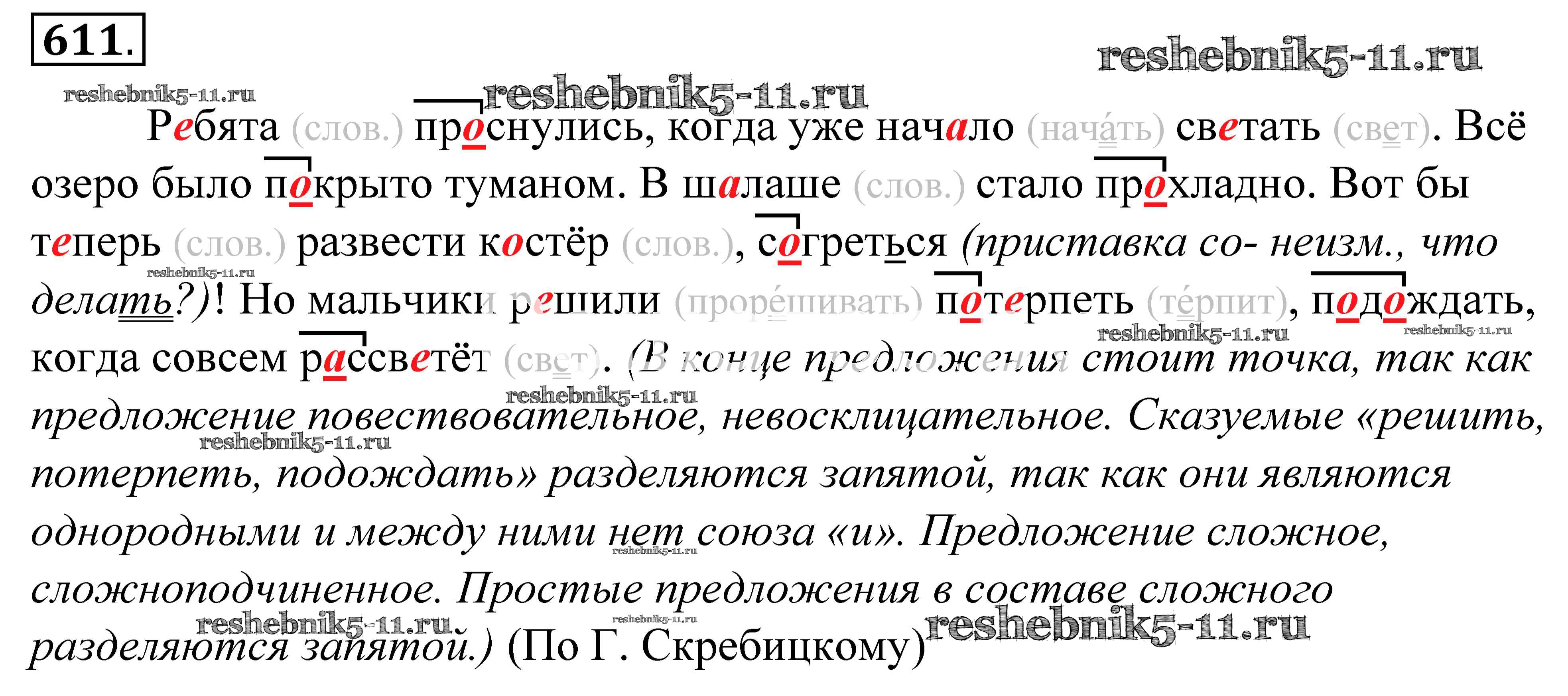 Готовая домашняя работа с ответами по Русскому языку за 5 класс Купалова, Еремеева, Лидман-Орлова Учебник Дрофа 2015 ФГОС - Упражнения 611