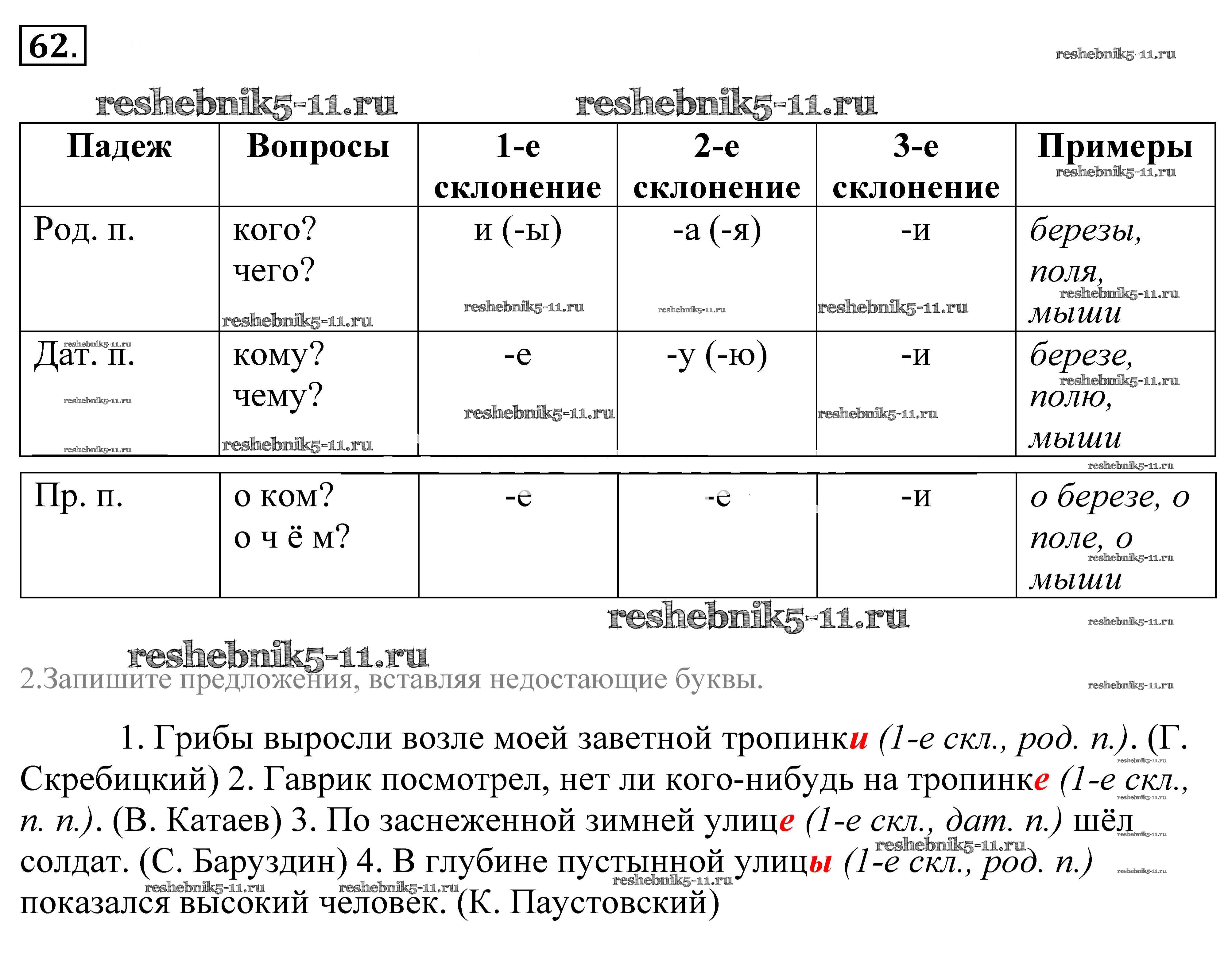 Готовая домашняя работа с ответами по Русскому языку за 5 класс Купалова, Еремеева, Лидман-Орлова Учебник Дрофа 2015 ФГОС - Упражнения 62