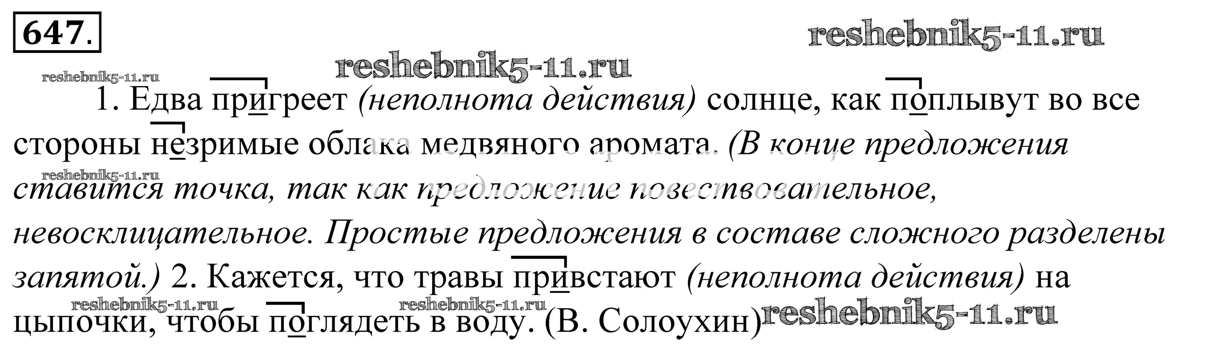 Готовая домашняя работа с ответами по Русскому языку за 5 класс Купалова, Еремеева, Лидман-Орлова Учебник Дрофа 2015 ФГОС - Упражнения 647