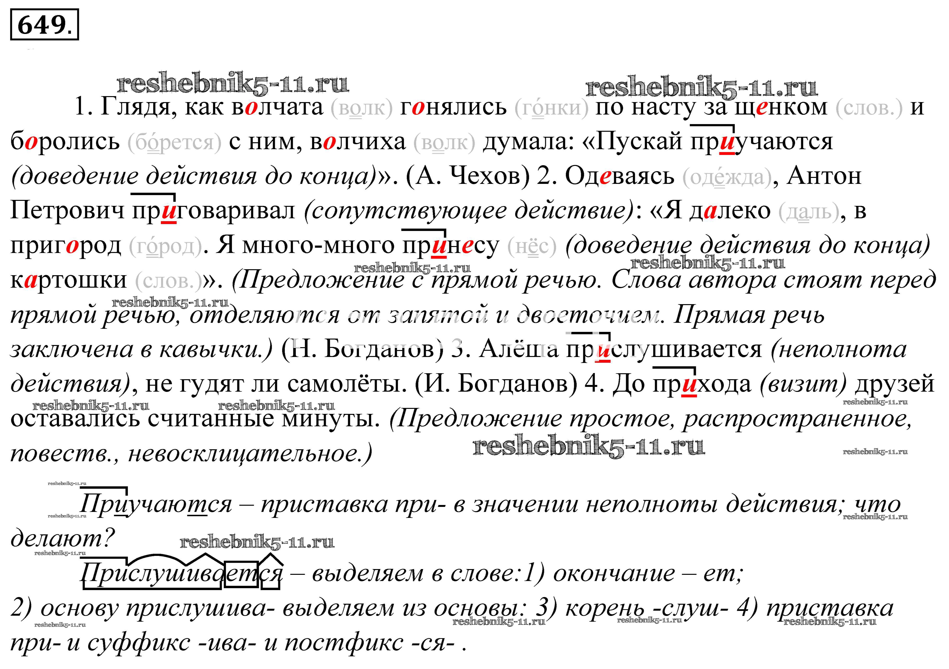 Готовая домашняя работа с ответами по Русскому языку за 5 класс Купалова, Еремеева, Лидман-Орлова Учебник Дрофа 2015 ФГОС - Упражнения 649