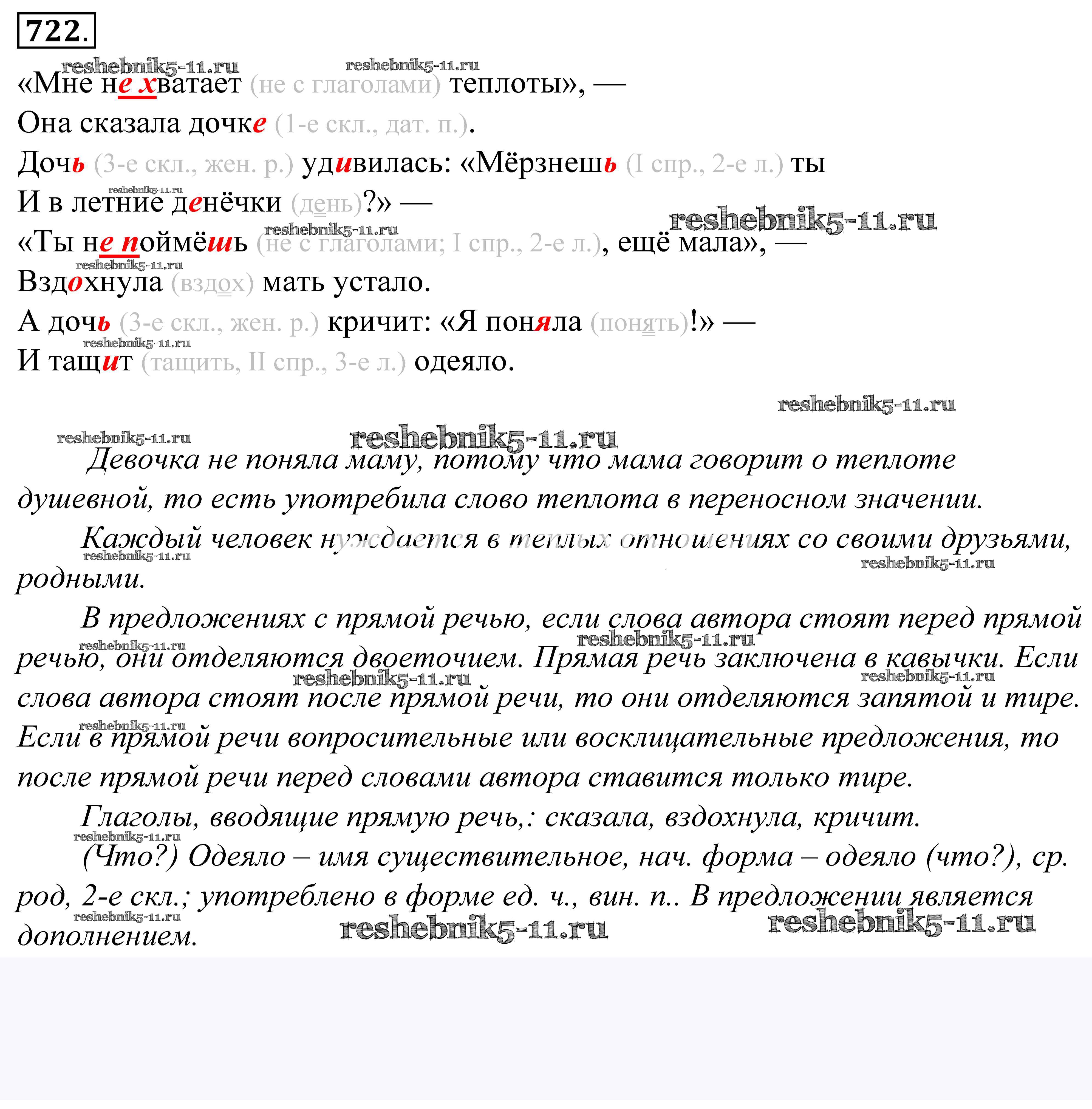 Готовая домашняя работа с ответами по Русскому языку за 5 класс Купалова, Еремеева, Лидман-Орлова Учебник Дрофа 2015 ФГОС - Упражнения 722