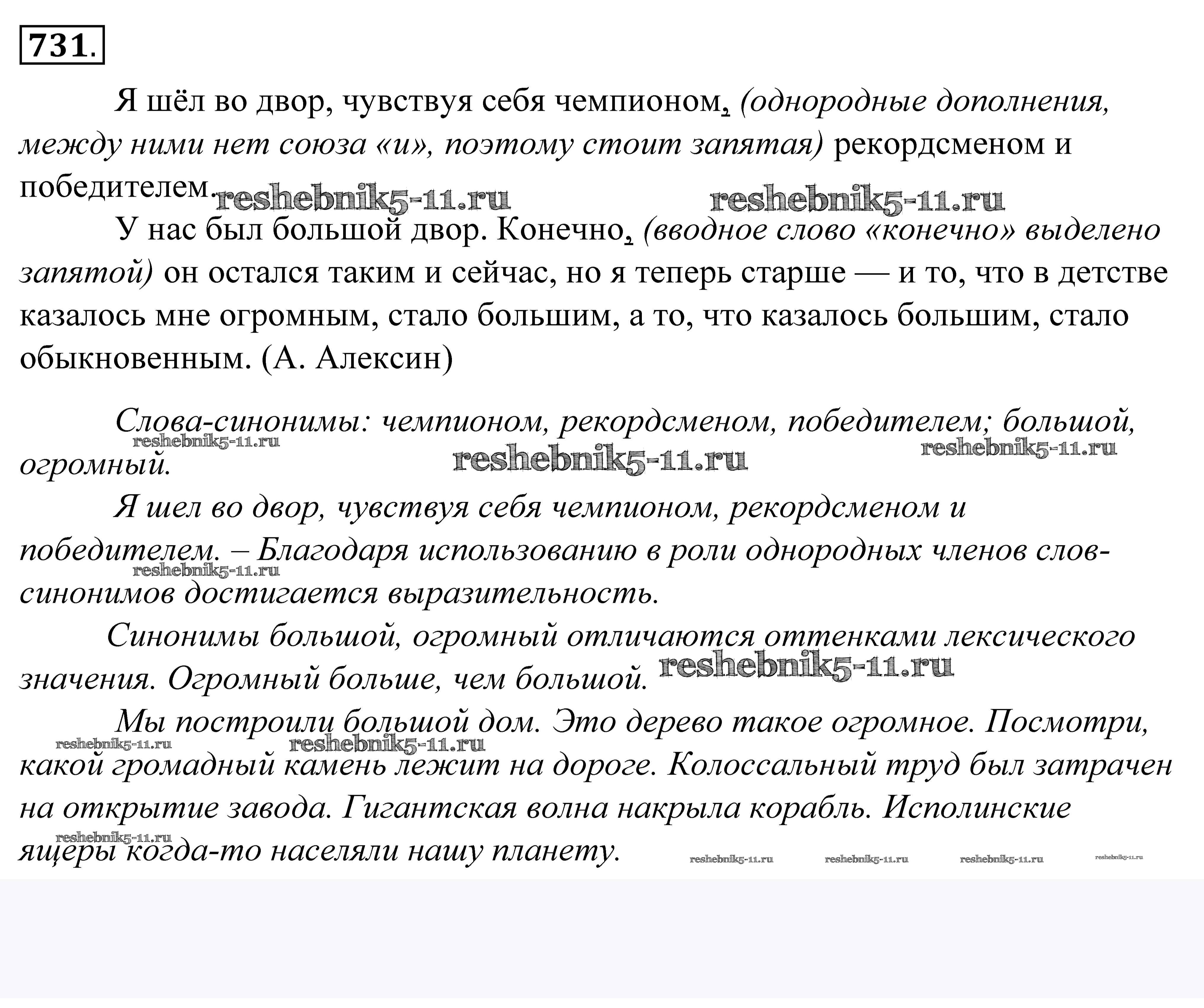 Готовая домашняя работа с ответами по Русскому языку за 5 класс Купалова, Еремеева, Лидман-Орлова Учебник Дрофа 2015 ФГОС - Упражнения 731