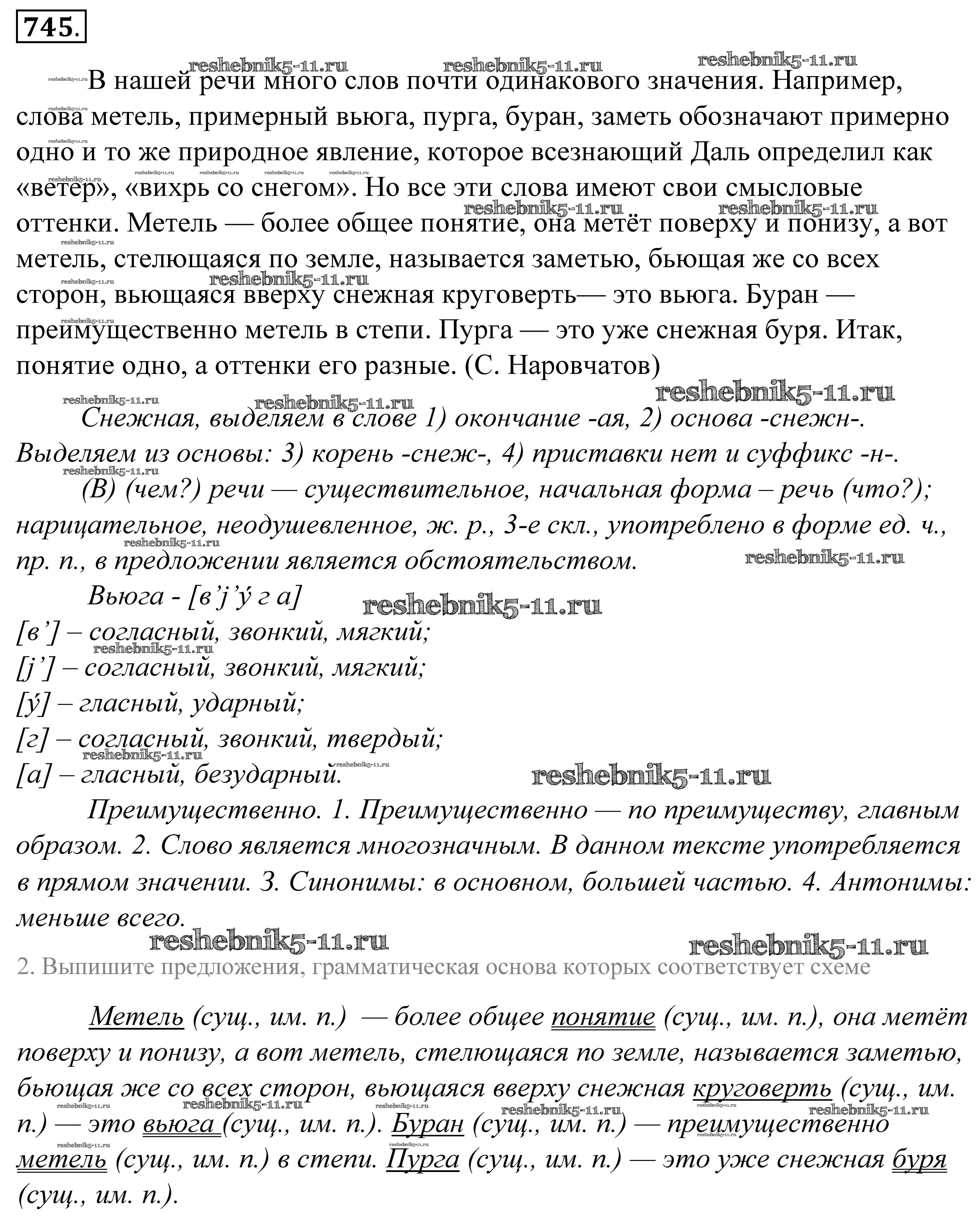 Готовая домашняя работа с ответами по Русскому языку за 5 класс Купалова, Еремеева, Лидман-Орлова Учебник Дрофа 2015 ФГОС - Упражнения 745