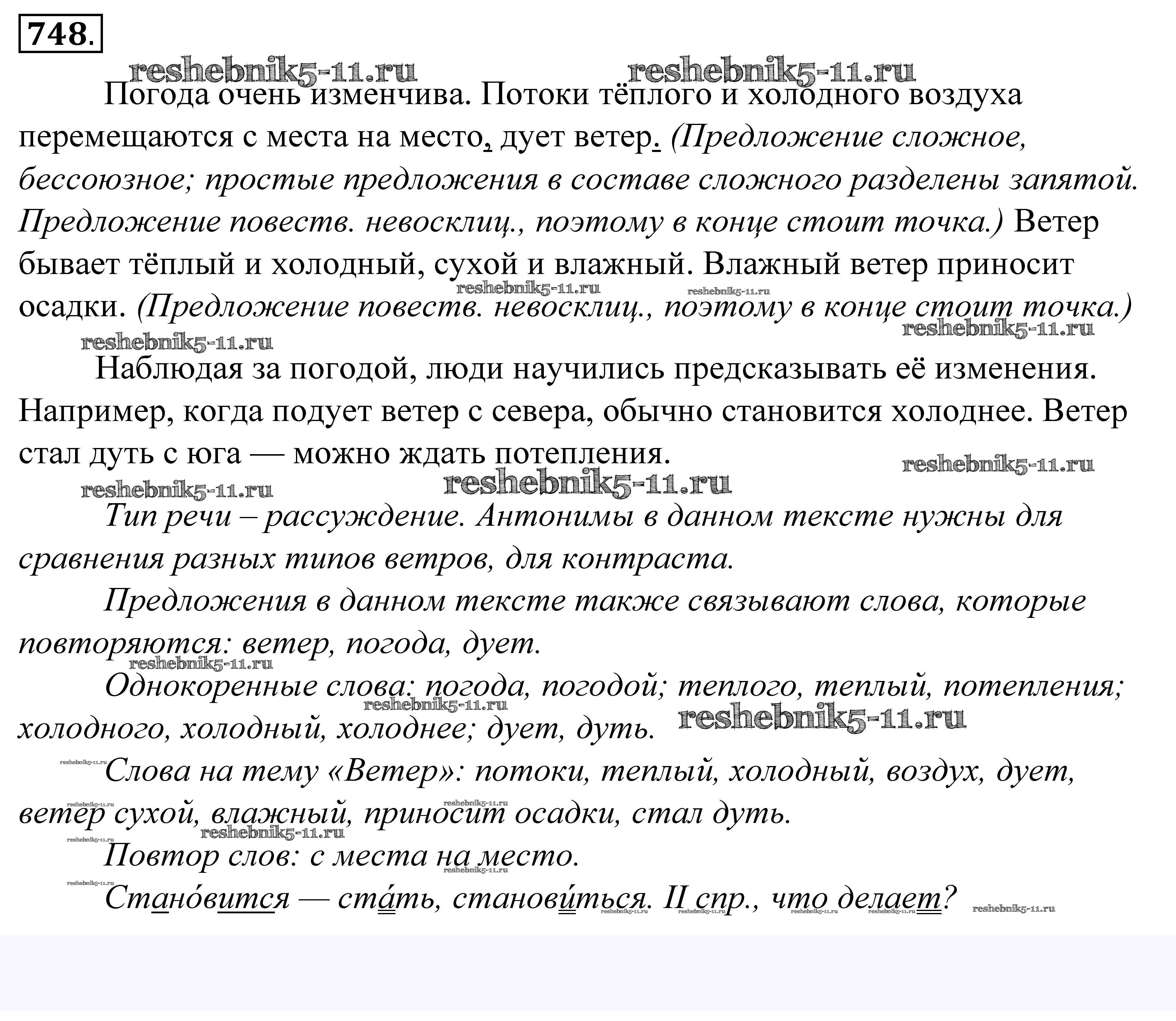 Готовая домашняя работа с ответами по Русскому языку за 5 класс Купалова, Еремеева, Лидман-Орлова Учебник Дрофа 2015 ФГОС - Упражнения 748