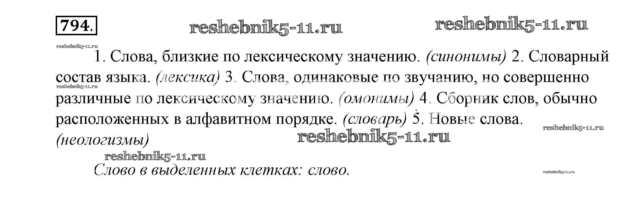 Готовая домашняя работа с ответами по Русскому языку за 5 класс Купалова, Еремеева, Лидман-Орлова Учебник Дрофа 2015 ФГОС - Упражнения 794