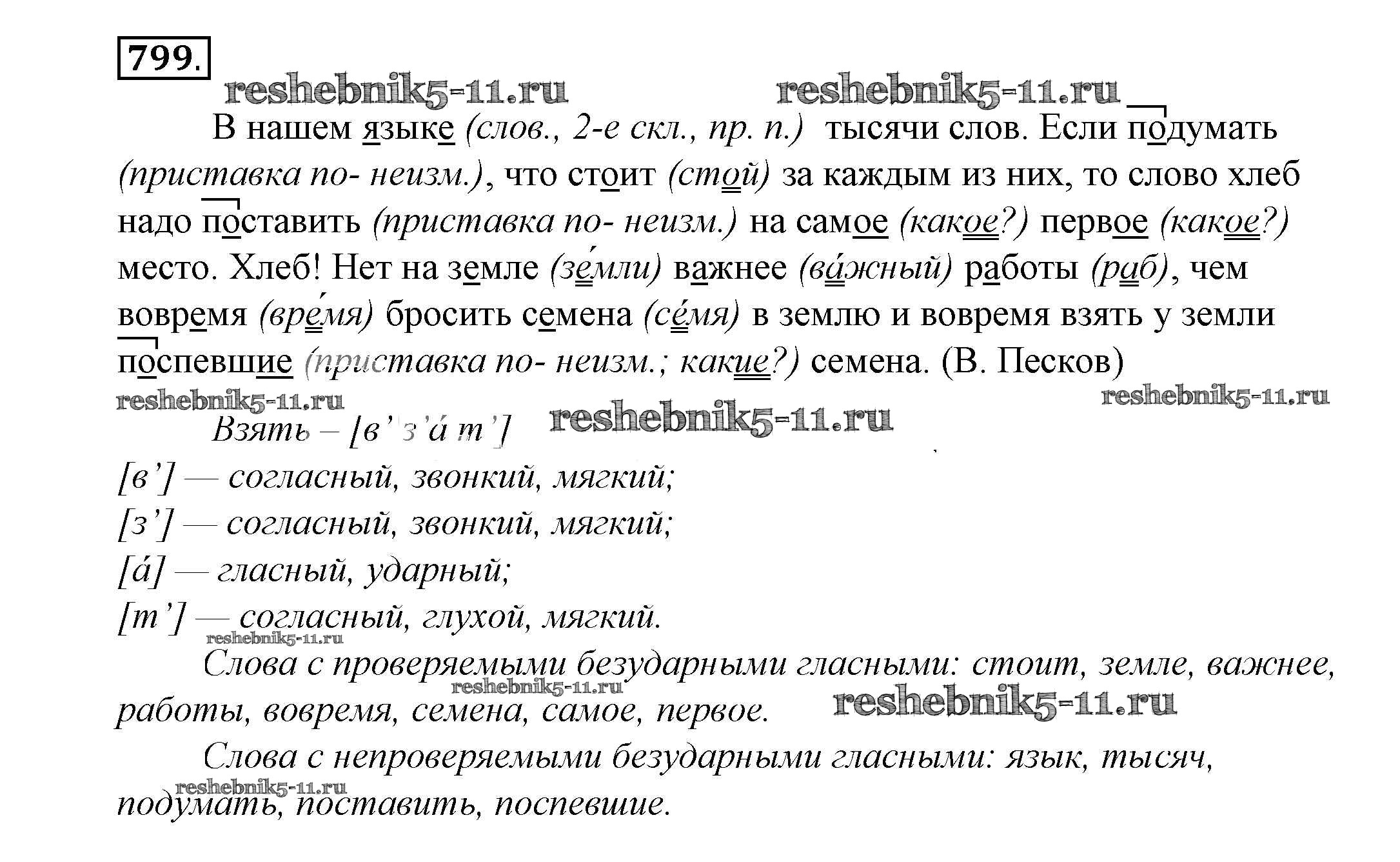 Готовая домашняя работа с ответами по Русскому языку за 5 класс Купалова, Еремеева, Лидман-Орлова Учебник Дрофа 2015 ФГОС - Упражнения 799