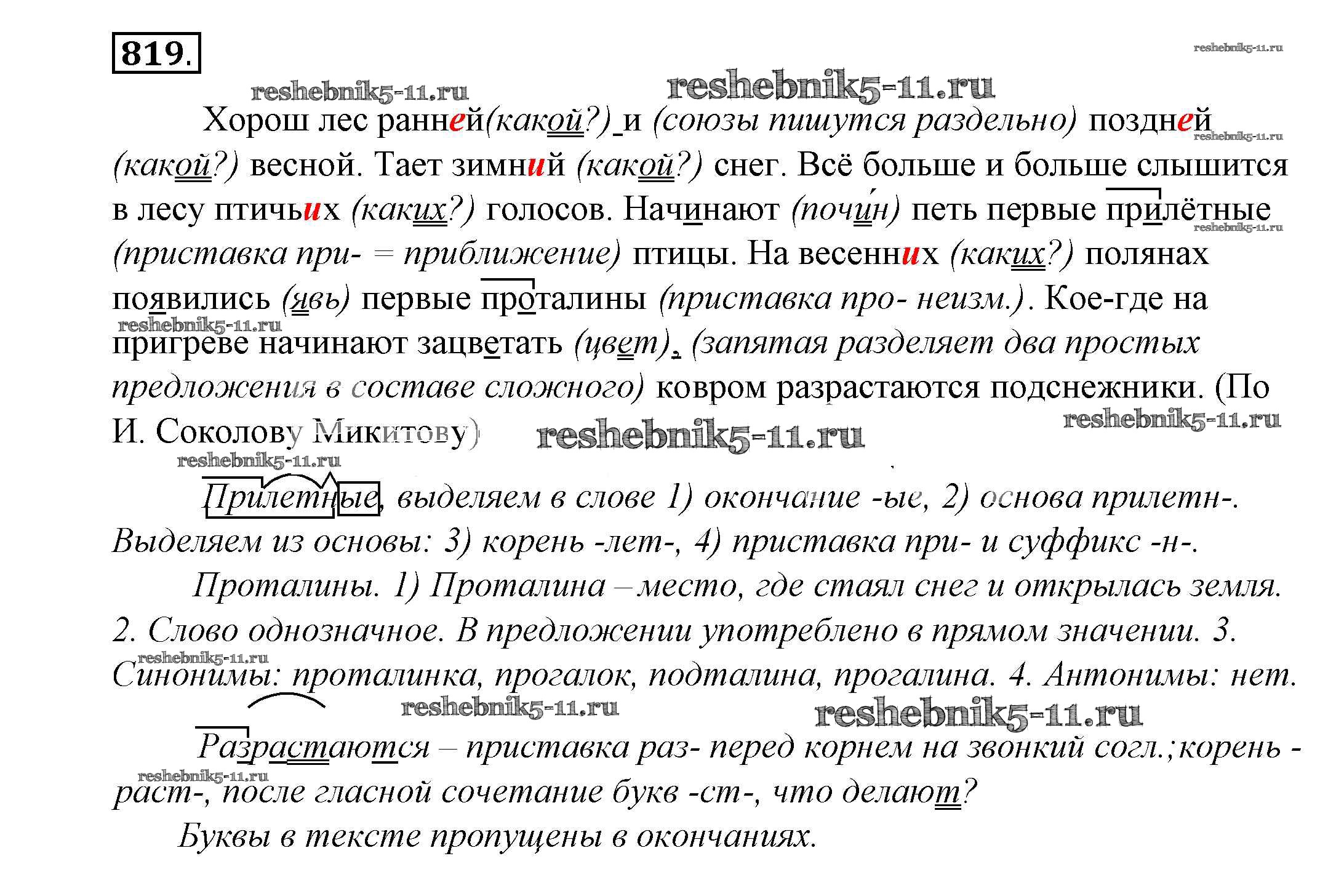 Русский язык за 5 класс Купалова Учебник Дрофа упражнение 819