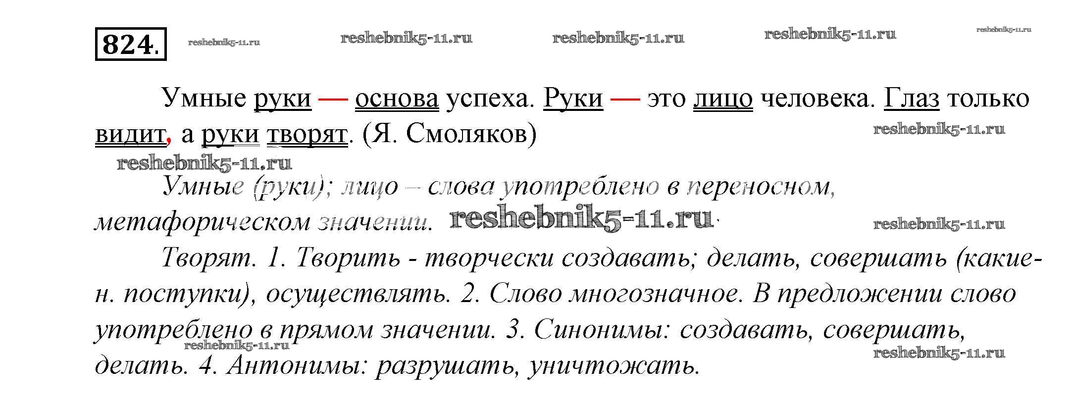 Готовая домашняя работа с ответами по Русскому языку за 5 класс Купалова, Еремеева, Лидман-Орлова Учебник Дрофа 2015 ФГОС - Упражнения 824