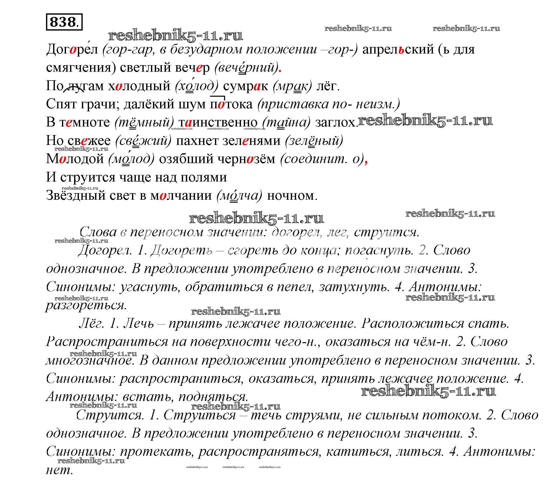 Готовая домашняя работа с ответами по Русскому языку за 5 класс Купалова, Еремеева, Лидман-Орлова Учебник Дрофа 2015 ФГОС - Упражнения 838
