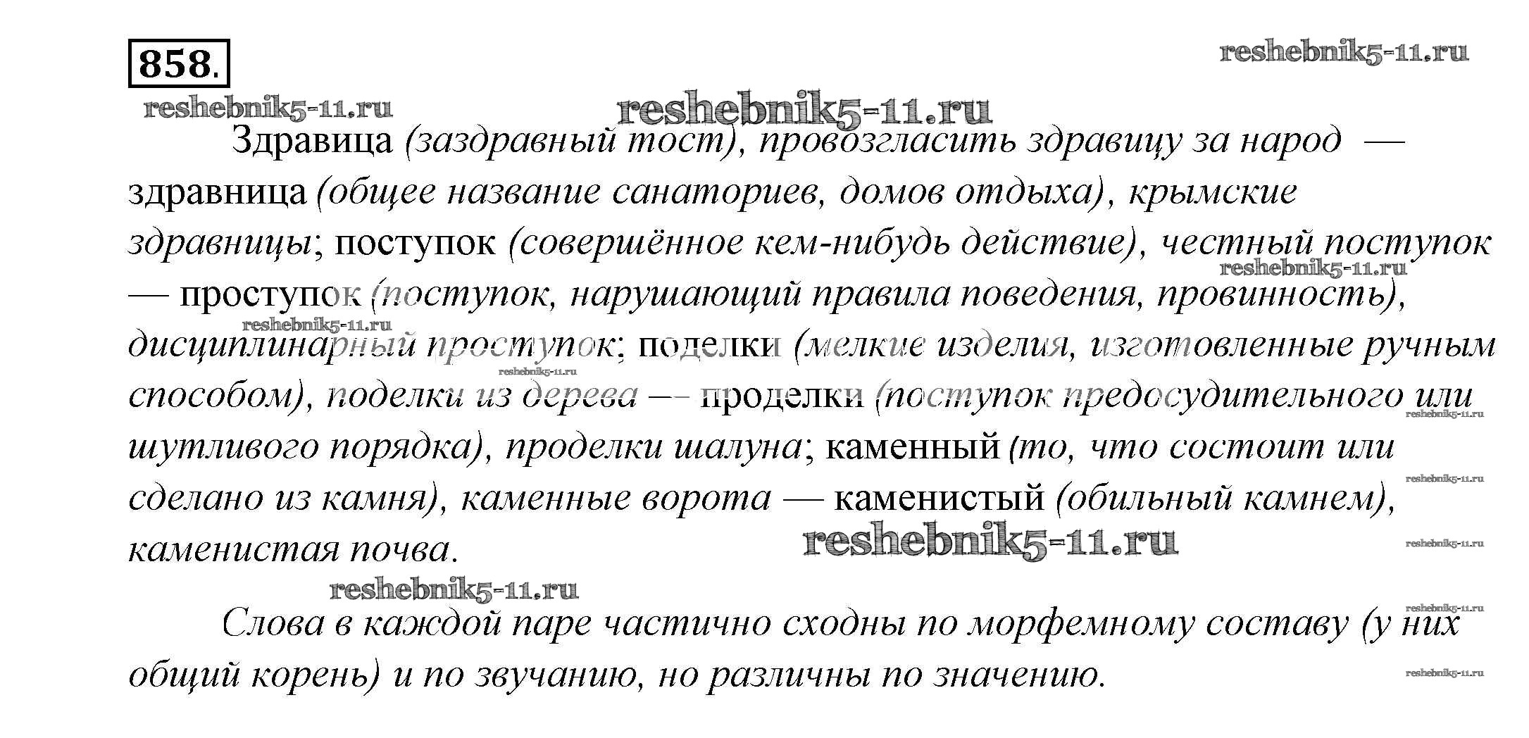 Готовая домашняя работа с ответами по Русскому языку за 5 класс Купалова, Еремеева, Лидман-Орлова Учебник Дрофа 2015 ФГОС - Упражнения 858