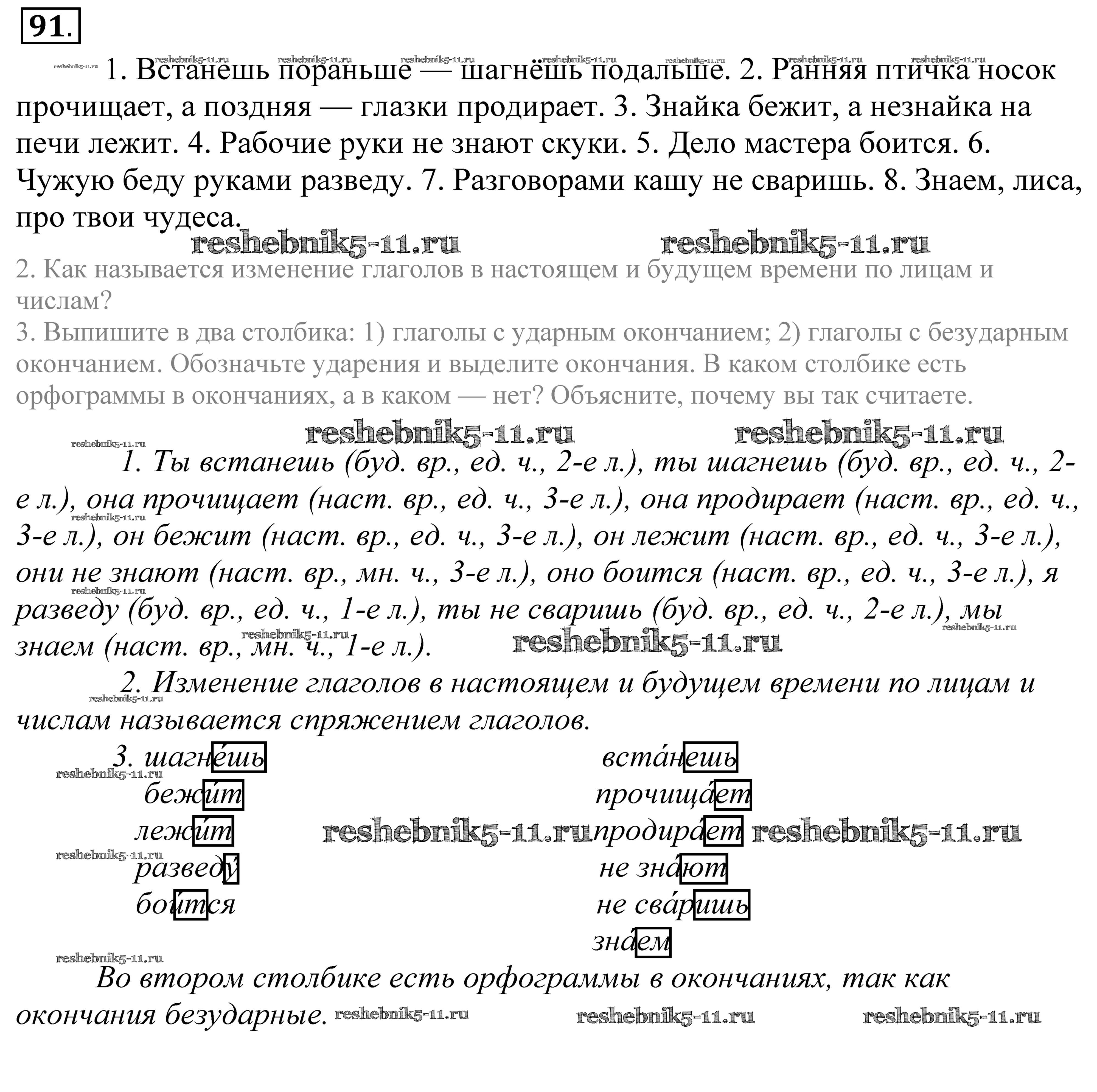 Готовая домашняя работа с ответами по Русскому языку за 5 класс Купалова, Еремеева, Лидман-Орлова Учебник Дрофа 2015 ФГОС - Упражнения 91