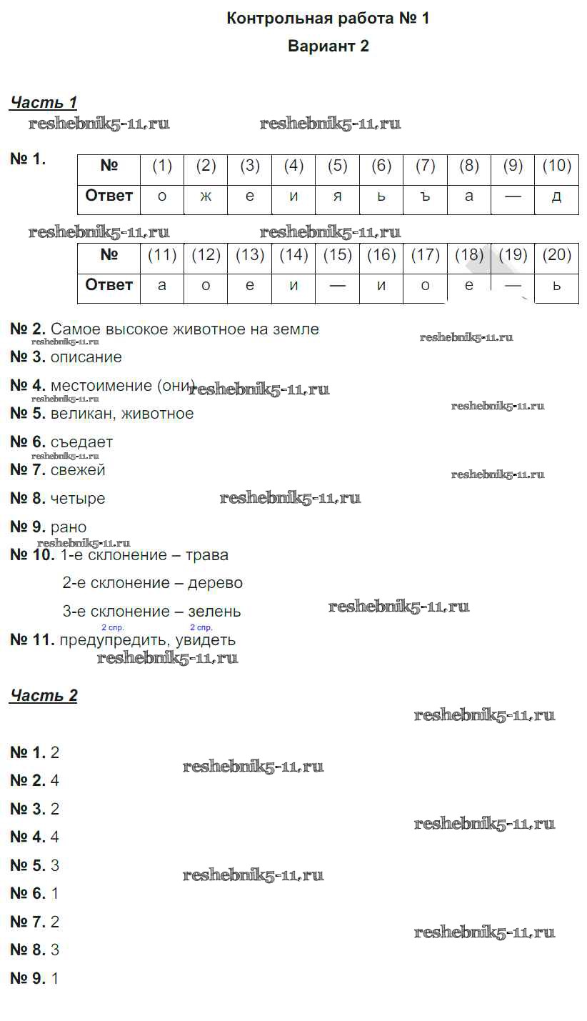 Готовая домашняя работа с ответами по Русскому языку за 5 класс Гулеватая, Соловьева, Журавлева Рабочая тетрадь Национальное образование 2019 ФГОС - КР-1. Варианты 2