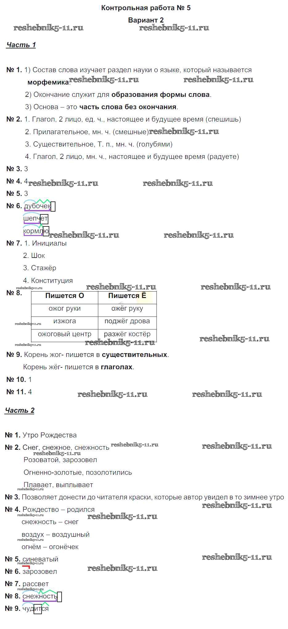 Готовая домашняя работа с ответами по Русскому языку за 5 класс Гулеватая, Соловьева, Журавлева Рабочая тетрадь Национальное образование 2019 ФГОС - КР-5. Варианты 2