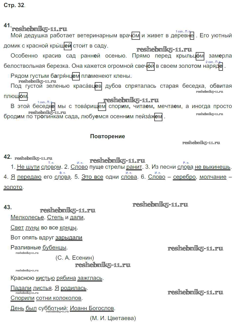Готовая домашняя работа с ответами по Русскому языку за 5 класс Тростенцова, Дейкина, Невская Рабочая тетрадь УМК Экзамен 2015 ФГОС - Страницы 32