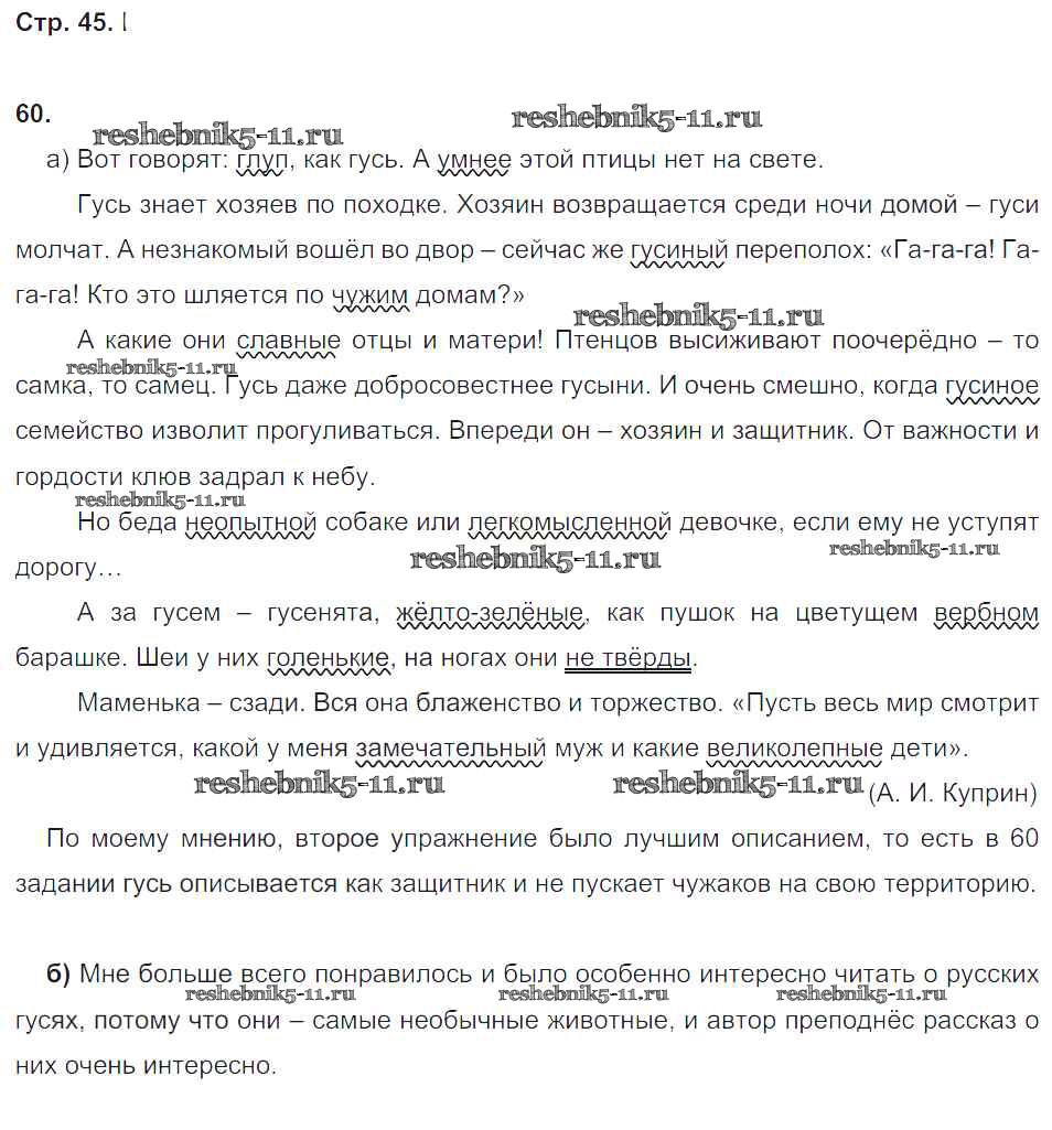 Готовая домашняя работа с ответами по Русскому языку за 5 класс Тростенцова, Дейкина, Невская Рабочая тетрадь УМК Экзамен 2015 ФГОС - Страницы 45