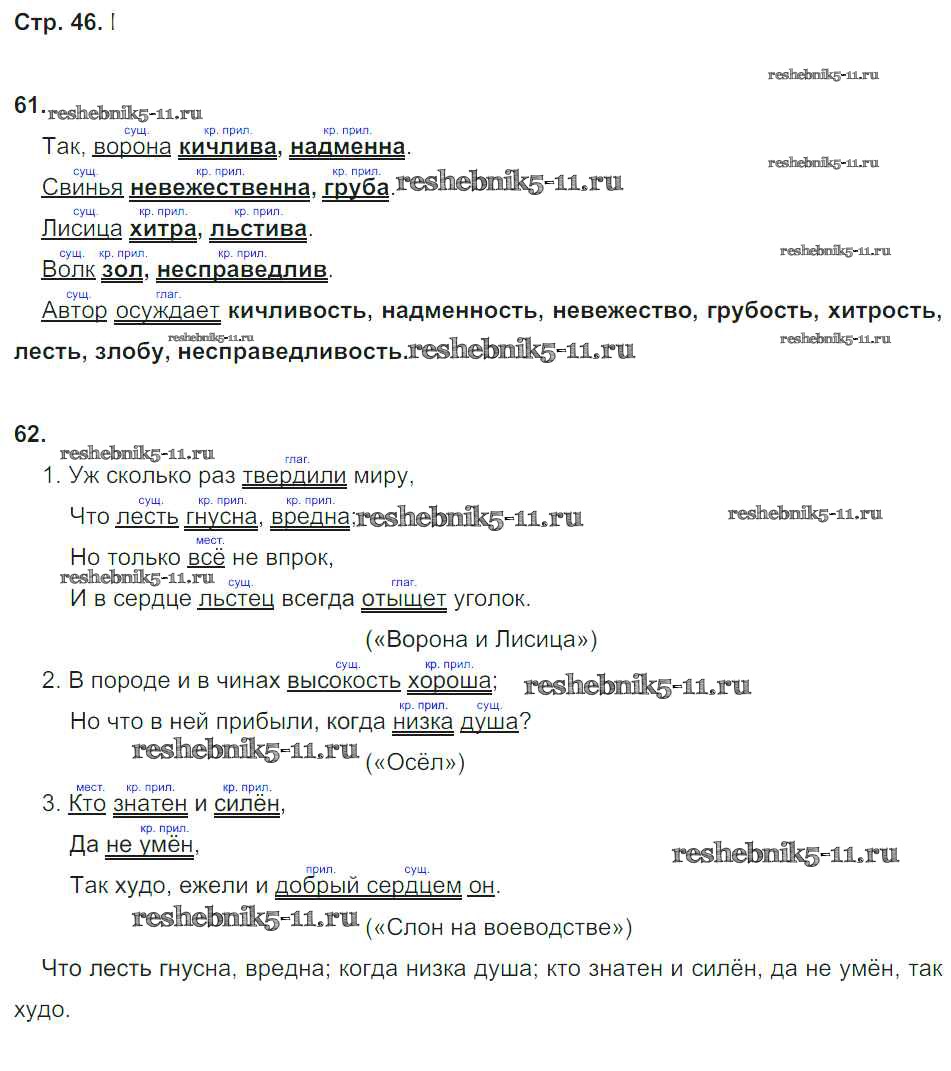 Готовая домашняя работа с ответами по Русскому языку за 5 класс Тростенцова, Дейкина, Невская Рабочая тетрадь УМК Экзамен 2015 ФГОС - Страницы 46