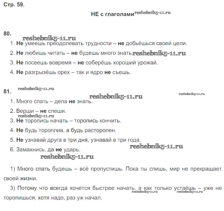 Готовая домашняя работа с ответами по Русскому языку за 5 класс Тростенцова, Дейкина, Невская Рабочая тетрадь УМК Экзамен 2015 ФГОС - Страницы 59