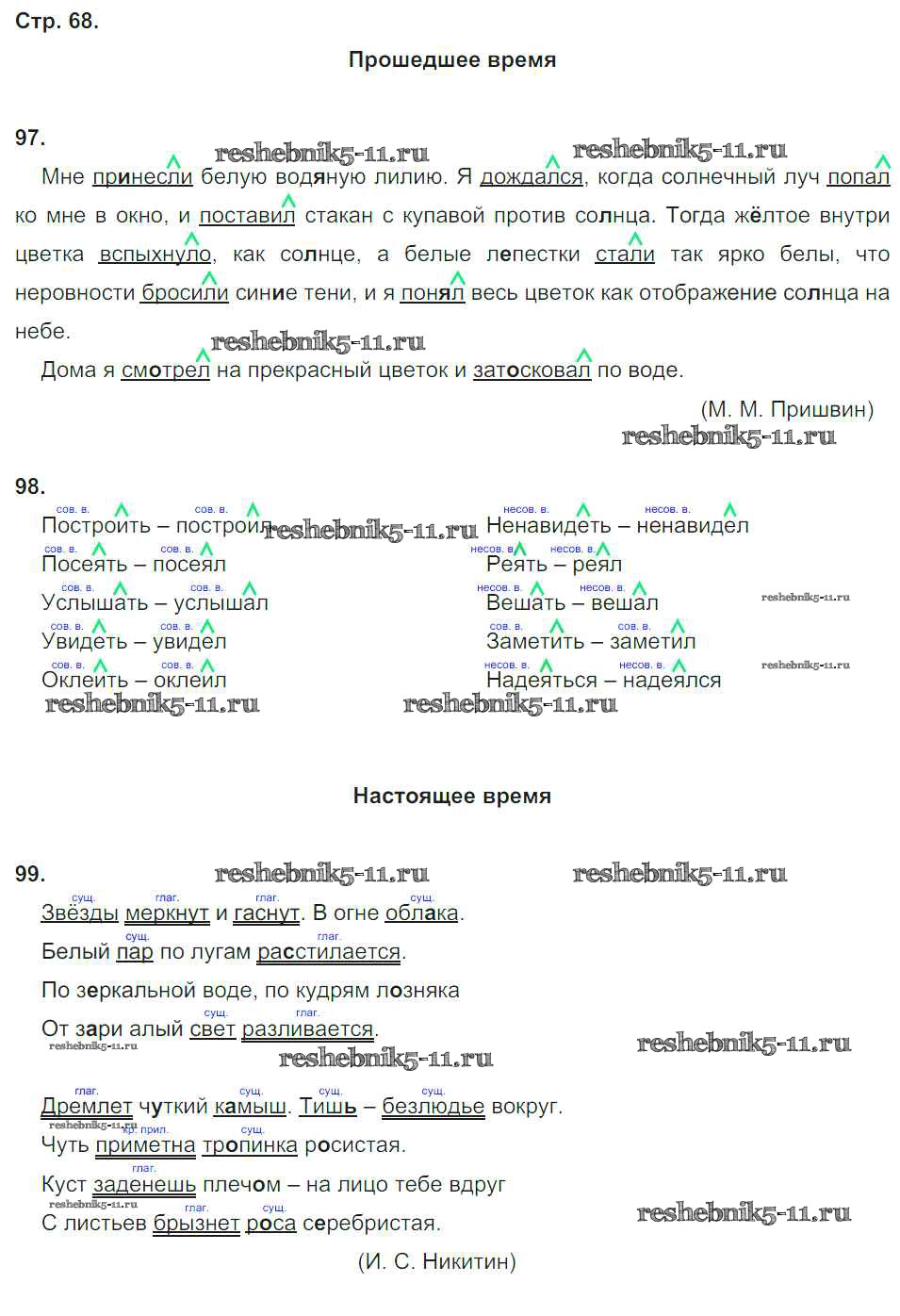 Готовая домашняя работа с ответами по Русскому языку за 5 класс Тростенцова, Дейкина, Невская Рабочая тетрадь УМК Экзамен 2015 ФГОС - Страницы 68