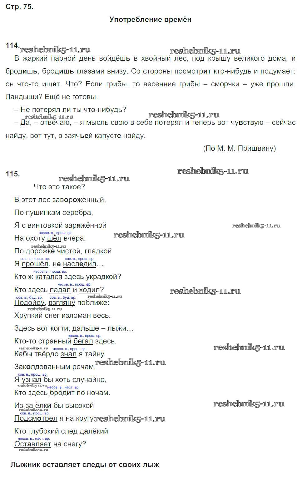 Готовая домашняя работа с ответами по Русскому языку за 5 класс Тростенцова, Дейкина, Невская Рабочая тетрадь УМК Экзамен 2015 ФГОС - Страницы 75