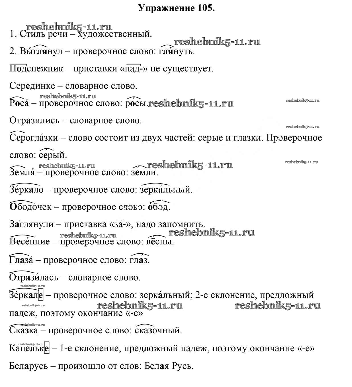 Готовая домашняя работа с ответами по Русскому языку за 5 класс Мурина, Игнатович, Жадейко Учебник Часть 1, 2 Национальный институт образования 2014 ФГОС - Часть 1. Задания 105