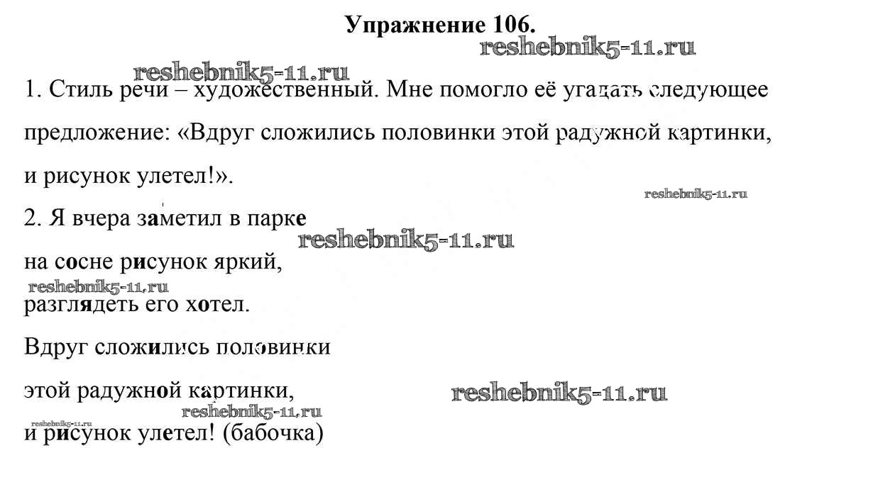 Готовая домашняя работа с ответами по Русскому языку за 5 класс Мурина, Игнатович, Жадейко Учебник Часть 1, 2 Национальный институт образования 2014 ФГОС - Часть 1. Задания 106