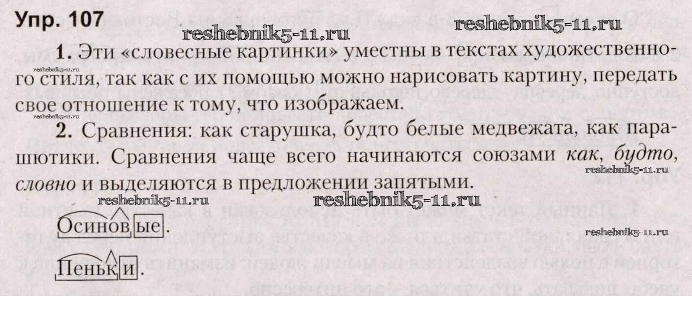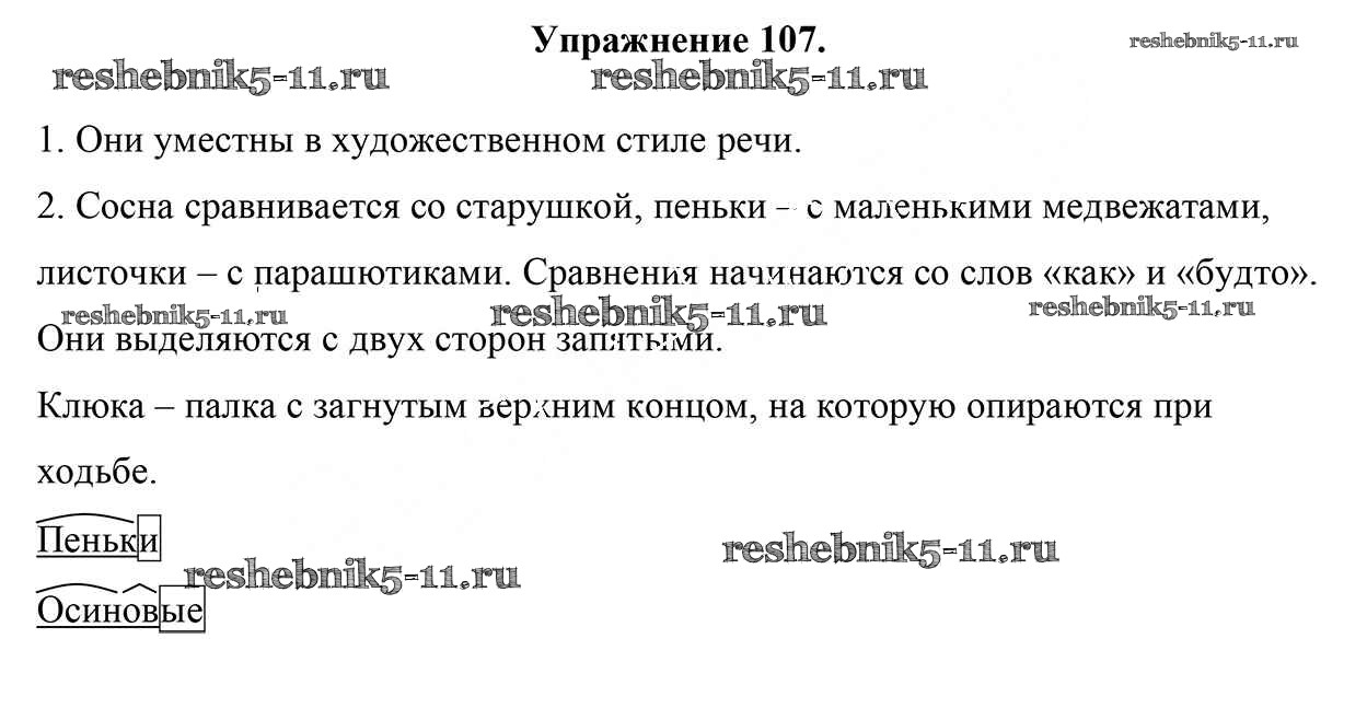 Готовая домашняя работа с ответами по Русскому языку за 5 класс Мурина, Игнатович, Жадейко Учебник Часть 1, 2 Национальный институт образования 2014 ФГОС - Часть 1. Задания 107