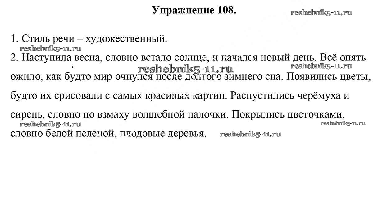 Готовая домашняя работа с ответами по Русскому языку за 5 класс Мурина, Игнатович, Жадейко Учебник Часть 1, 2 Национальный институт образования 2014 ФГОС - Часть 1. Задания 108