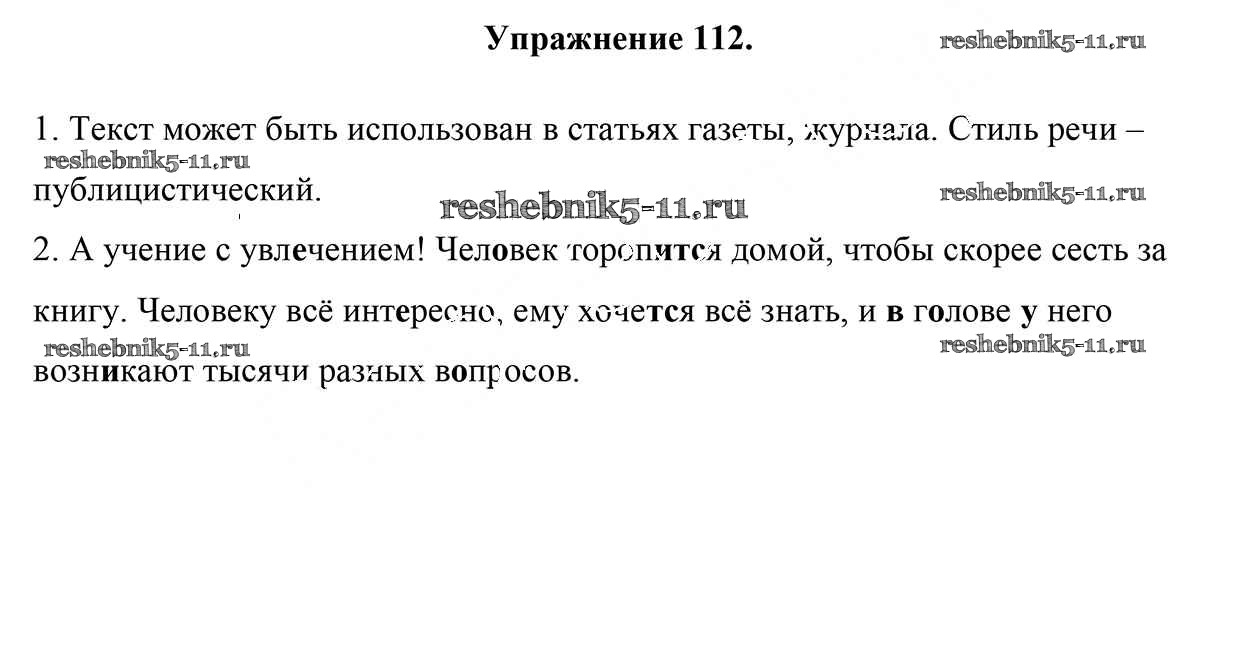 Готовая домашняя работа с ответами по Русскому языку за 5 класс Мурина, Игнатович, Жадейко Учебник Часть 1, 2 Национальный институт образования 2014 ФГОС - Часть 1. Задания 112
