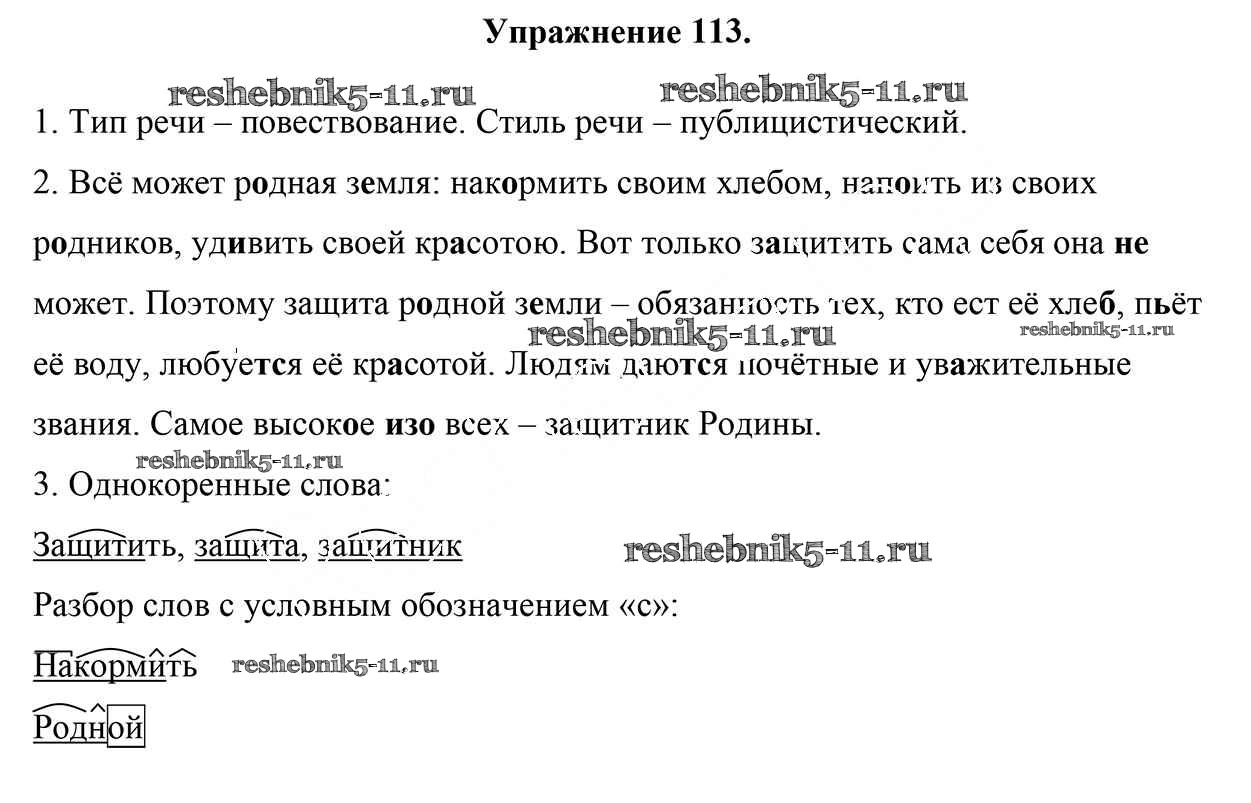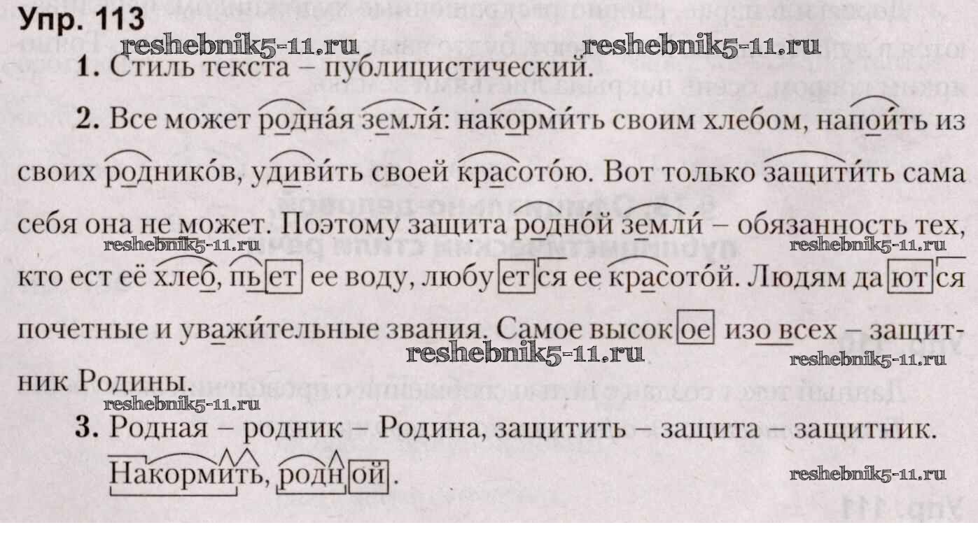 Готовая домашняя работа с ответами по Русскому языку за 5 класс Мурина, Игнатович, Жадейко Учебник Часть 1, 2 Национальный институт образования 2014 ФГОС - Часть 1. Задания 113