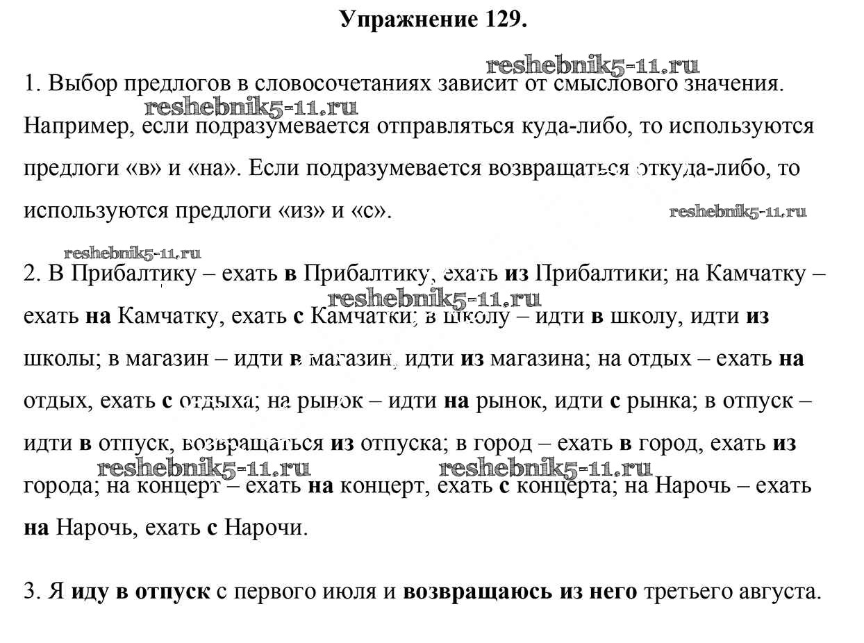 Готовая домашняя работа с ответами по Русскому языку за 5 класс Мурина, Игнатович, Жадейко Учебник Часть 1, 2 Национальный институт образования 2014 ФГОС - Часть 1. Задания 129