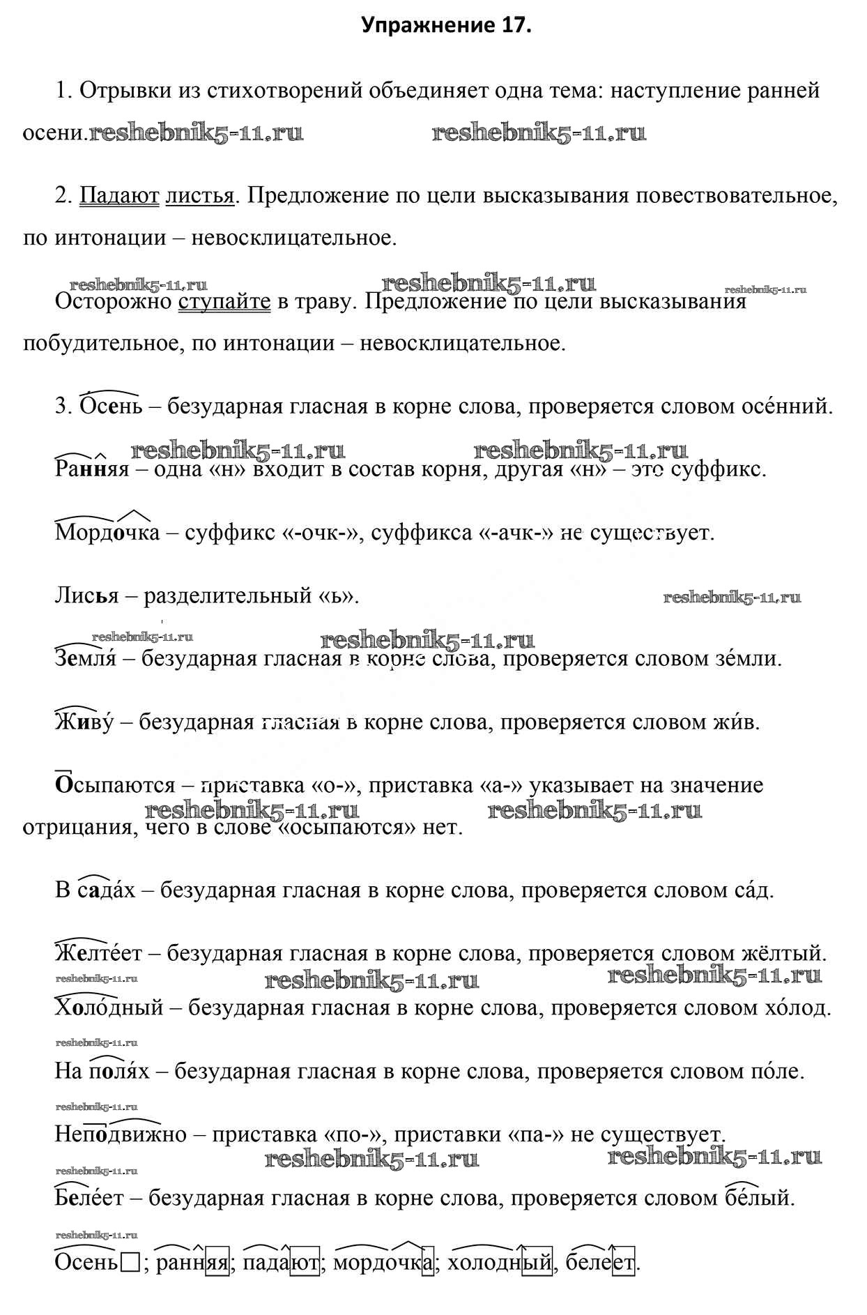 Готовая домашняя работа с ответами по Русскому языку за 5 класс Мурина, Игнатович, Жадейко Учебник Часть 1, 2 Национальный институт образования 2014 ФГОС - Часть 1. Задания 17