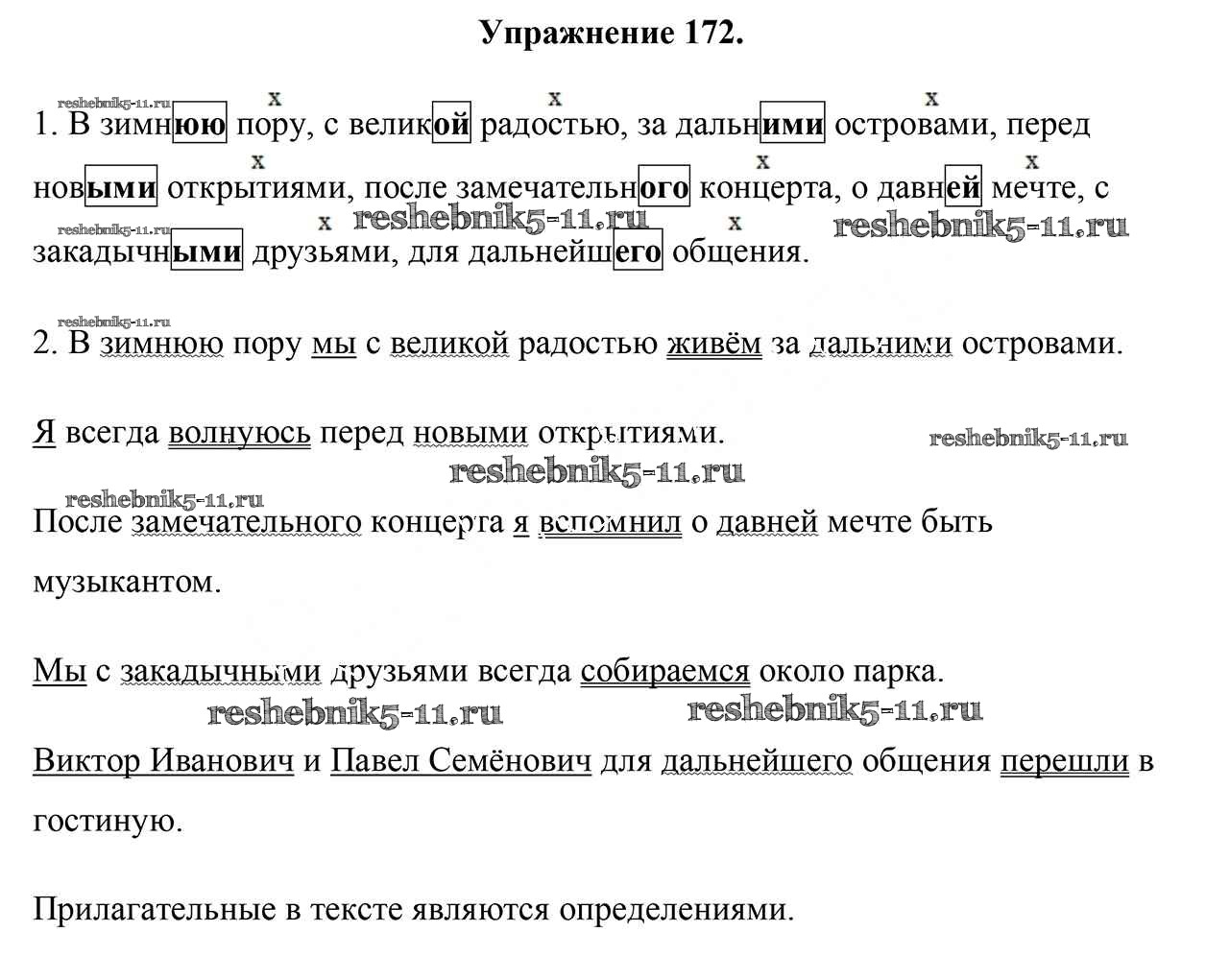 Готовая домашняя работа с ответами по Русскому языку за 5 класс Мурина, Игнатович, Жадейко Учебник Часть 1, 2 Национальный институт образования 2014 ФГОС - Часть 1. Задания 172