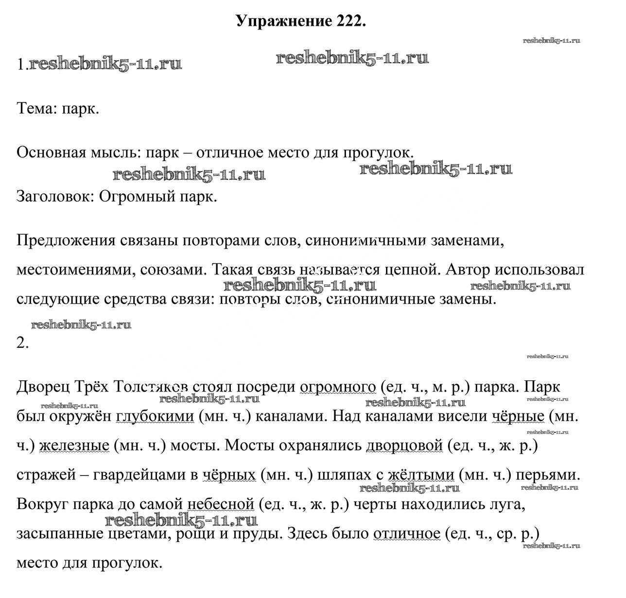 Готовая домашняя работа с ответами по Русскому языку за 5 класс Мурина, Игнатович, Жадейко Учебник Часть 1, 2 Национальный институт образования 2014 ФГОС - Часть 1. Задания 222