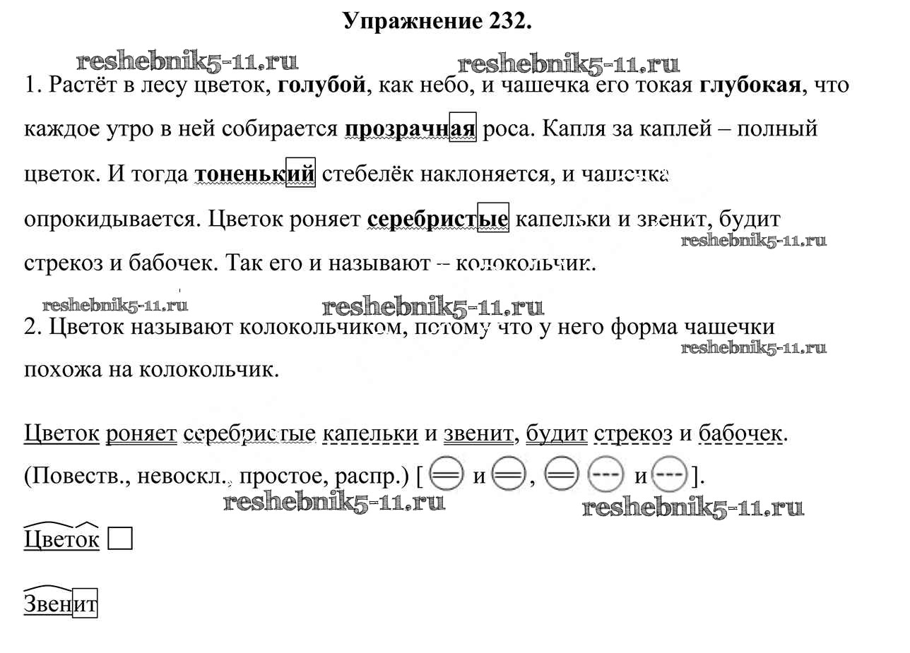 Готовая домашняя работа с ответами по Русскому языку за 5 класс Мурина, Игнатович, Жадейко Учебник Часть 1, 2 Национальный институт образования 2014 ФГОС - Часть 1. Задания 232