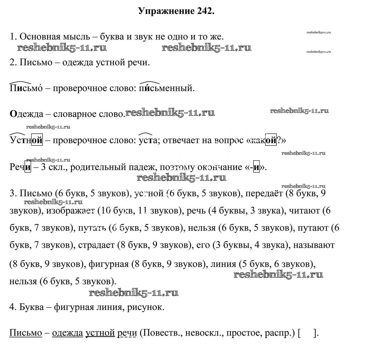 Готовая домашняя работа с ответами по Русскому языку за 5 класс Мурина, Игнатович, Жадейко Учебник Часть 1, 2 Национальный институт образования 2014 ФГОС - Часть 1. Задания 242