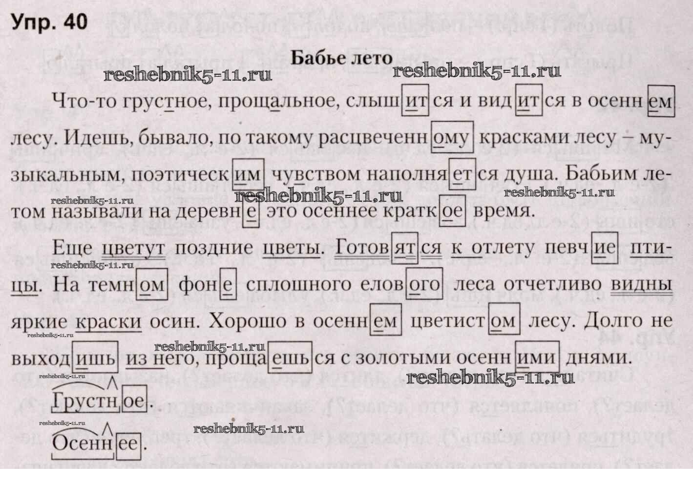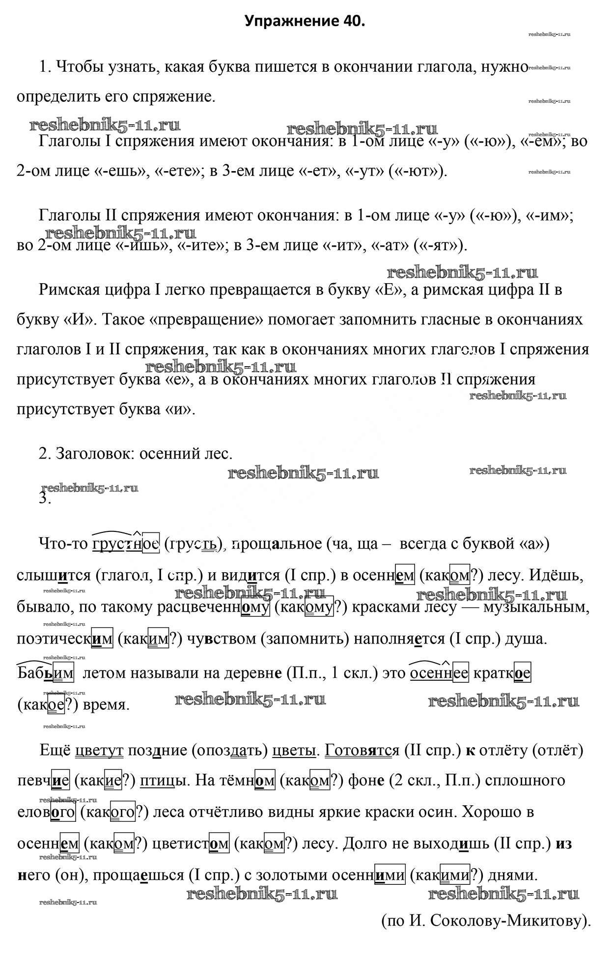 Готовая домашняя работа с ответами по Русскому языку за 5 класс Мурина, Игнатович, Жадейко Учебник Часть 1, 2 Национальный институт образования 2014 ФГОС - Часть 1. Задания 40