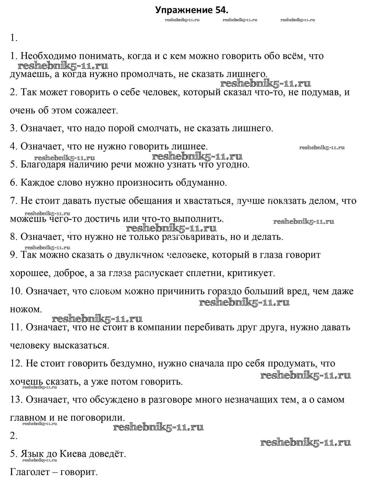 Готовая домашняя работа с ответами по Русскому языку за 5 класс Мурина, Игнатович, Жадейко Учебник Часть 1, 2 Национальный институт образования 2014 ФГОС - Часть 1. Задания 54