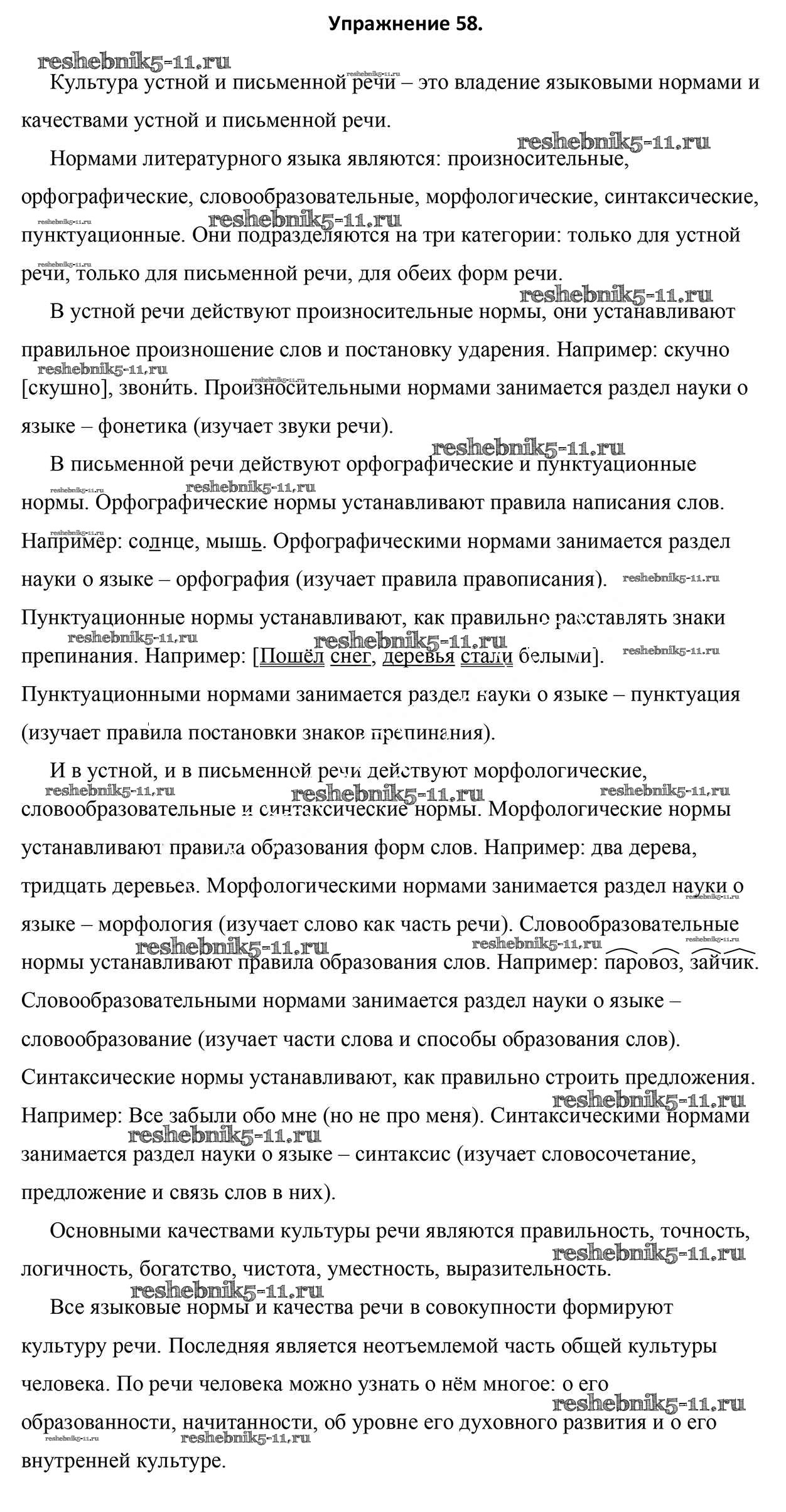 Готовая домашняя работа с ответами по Русскому языку за 5 класс Мурина, Игнатович, Жадейко Учебник Часть 1, 2 Национальный институт образования 2014 ФГОС - Часть 1. Задания 58