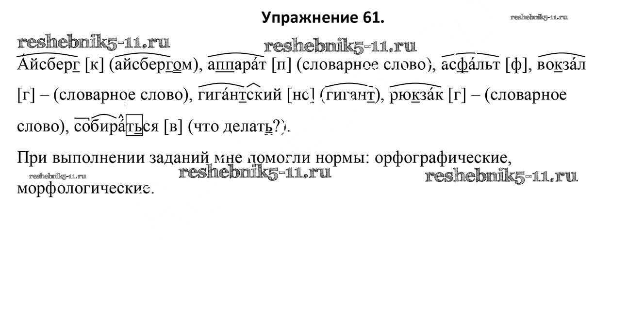 Готовая домашняя работа с ответами по Русскому языку за 5 класс Мурина, Игнатович, Жадейко Учебник Часть 1, 2 Национальный институт образования 2014 ФГОС - Часть 1. Задания 61