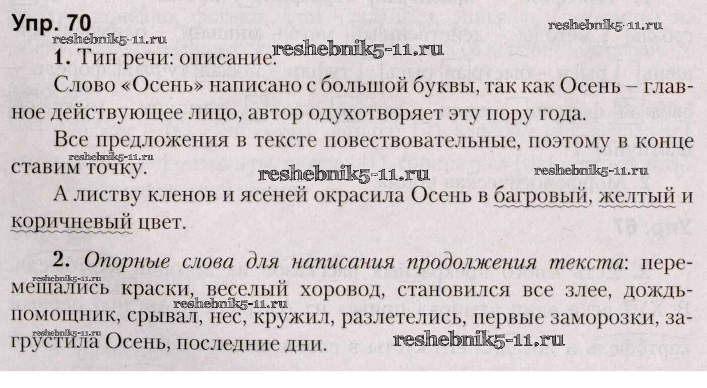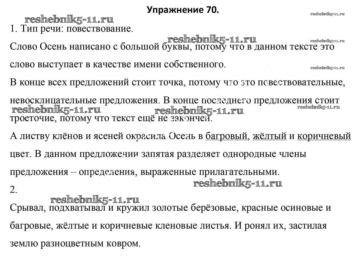 Готовая домашняя работа с ответами по Русскому языку за 5 класс Мурина, Игнатович, Жадейко Учебник Часть 1, 2 Национальный институт образования 2014 ФГОС - Часть 1. Задания 70
