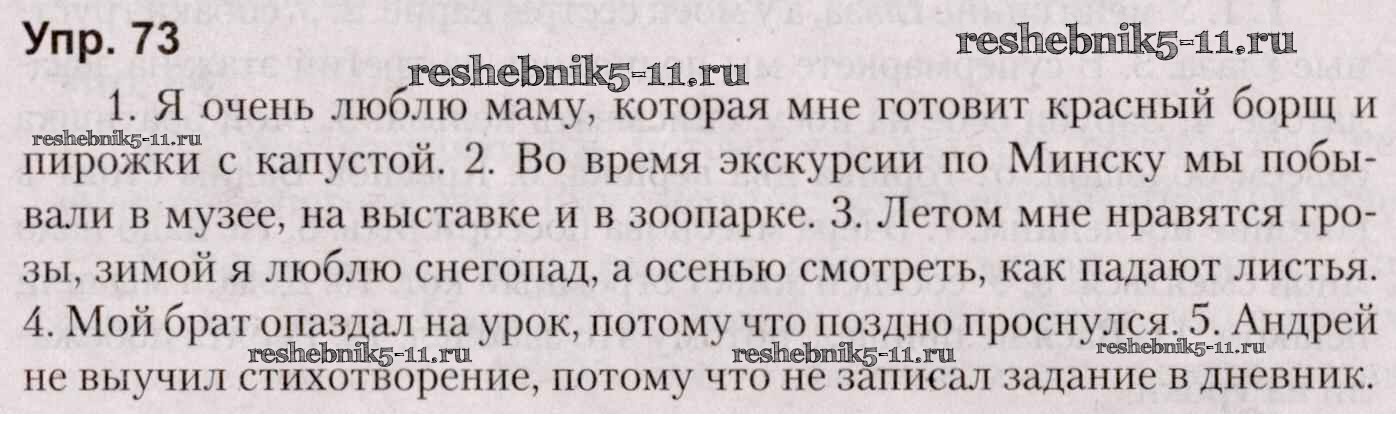 Готовая домашняя работа с ответами по Русскому языку за 5 класс Мурина, Игнатович, Жадейко Учебник Часть 1, 2 Национальный институт образования 2014 ФГОС - Часть 1. Задания 73