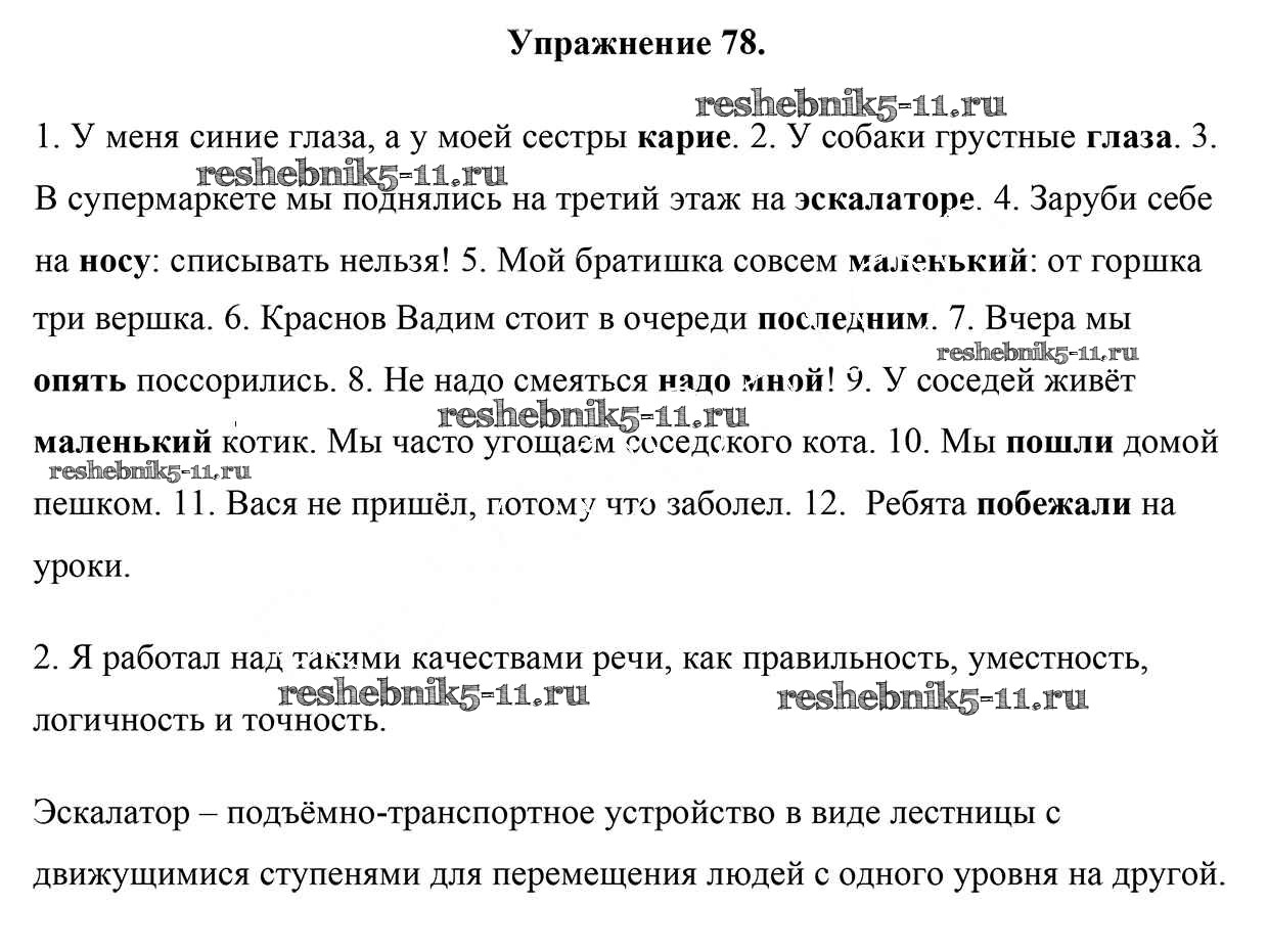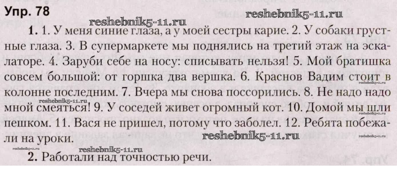 Готовая домашняя работа с ответами по Русскому языку за 5 класс Мурина, Игнатович, Жадейко Учебник Часть 1, 2 Национальный институт образования 2014 ФГОС - Часть 1. Задания 78