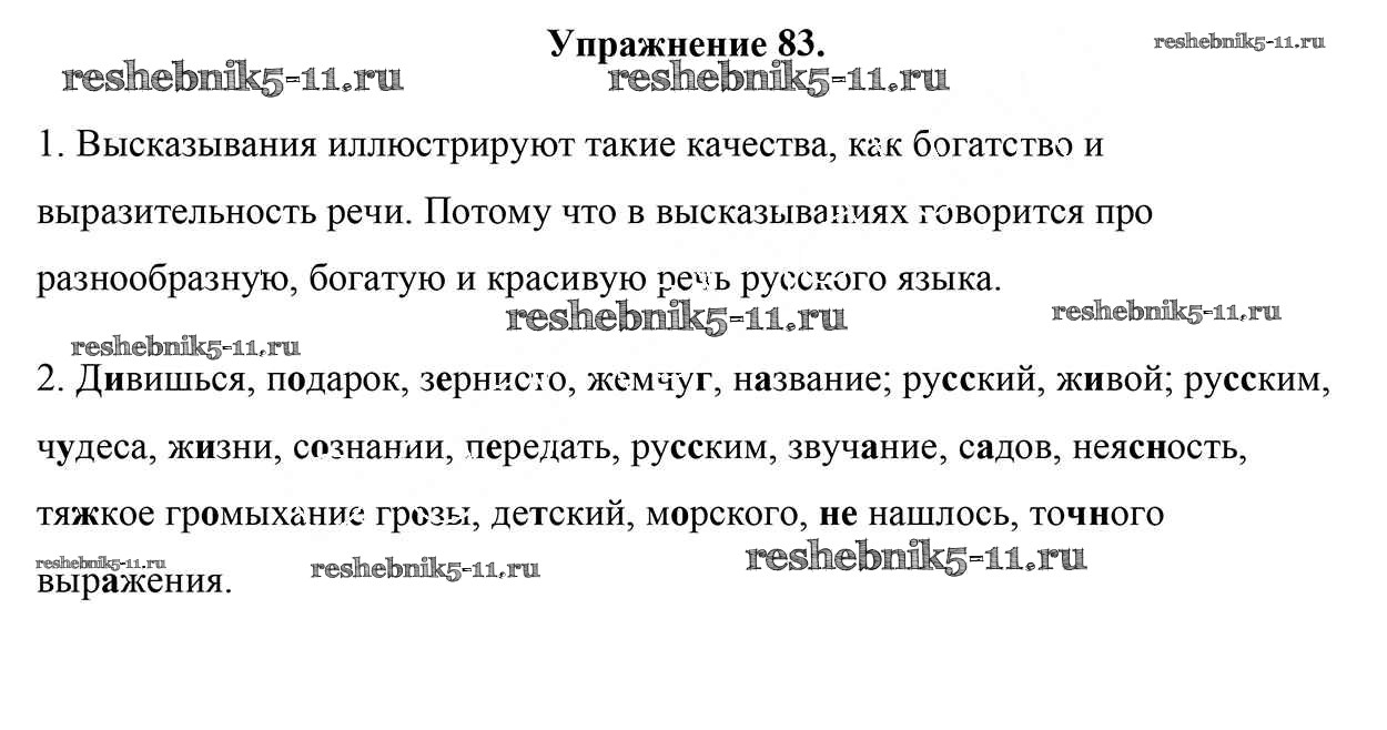 Готовая домашняя работа с ответами по Русскому языку за 5 класс Мурина, Игнатович, Жадейко Учебник Часть 1, 2 Национальный институт образования 2014 ФГОС - Часть 1. Задания 83