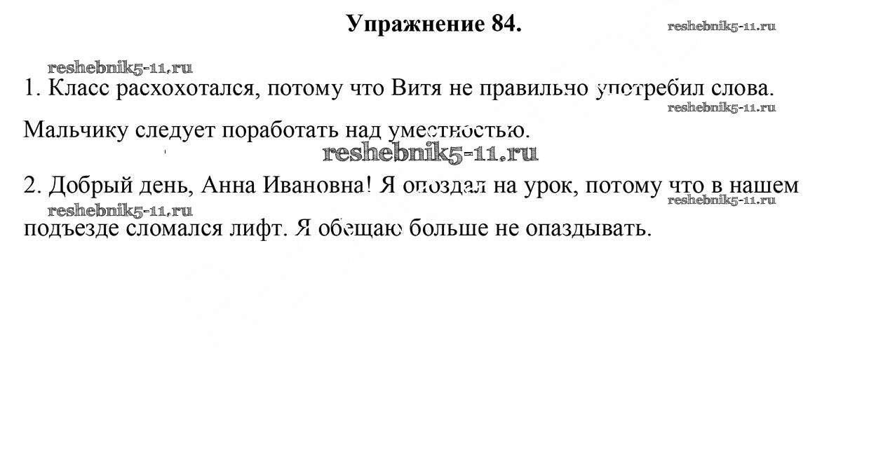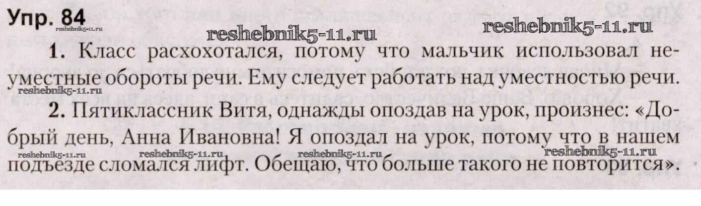 Готовая домашняя работа с ответами по Русскому языку за 5 класс Мурина, Игнатович, Жадейко Учебник Часть 1, 2 Национальный институт образования 2014 ФГОС - Часть 1. Задания 84