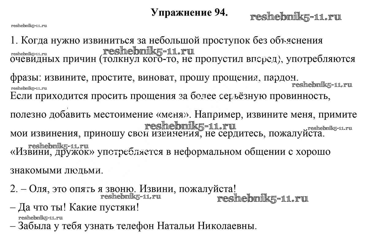 Готовая домашняя работа с ответами по Русскому языку за 5 класс Мурина, Игнатович, Жадейко Учебник Часть 1, 2 Национальный институт образования 2014 ФГОС - Часть 1. Задания 94